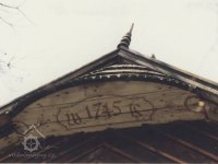 Letopočet na kabřinci, 2000, © Zuzana Pykalová, (Prvky na obrázku: epigrafické památky (nápisy, datování aj.), skládaný bedněný štít)