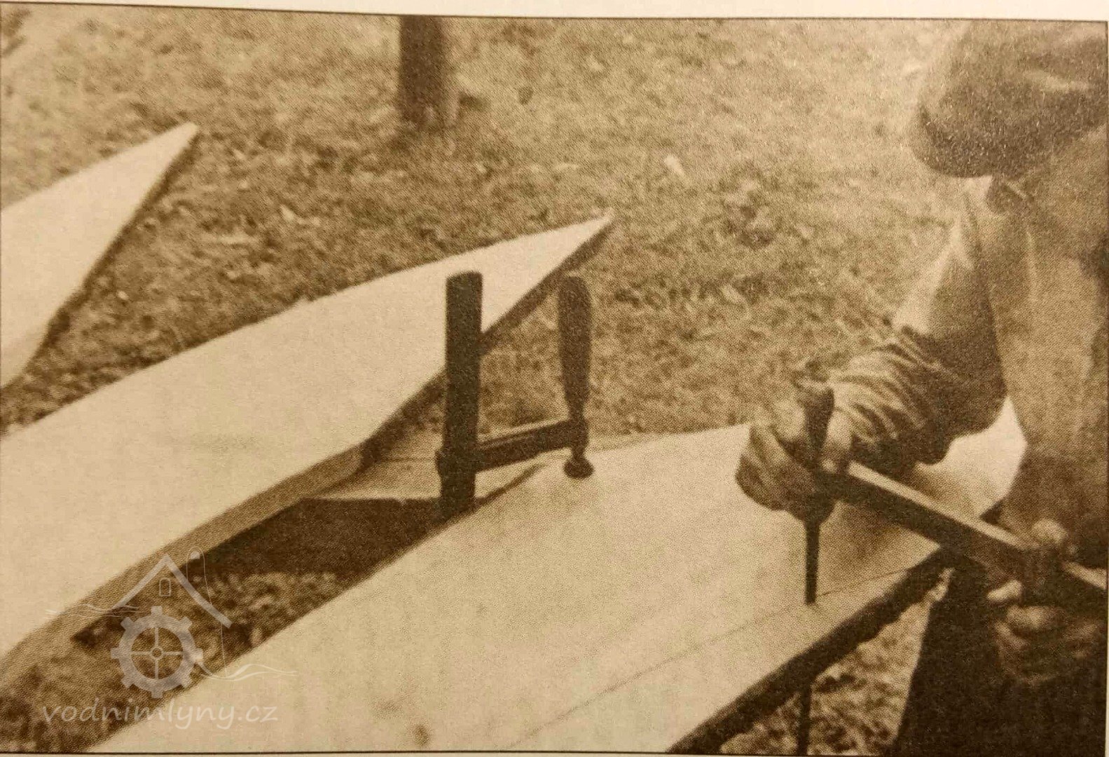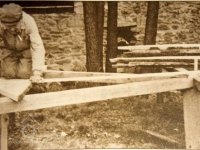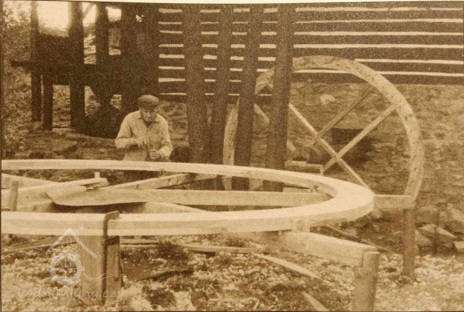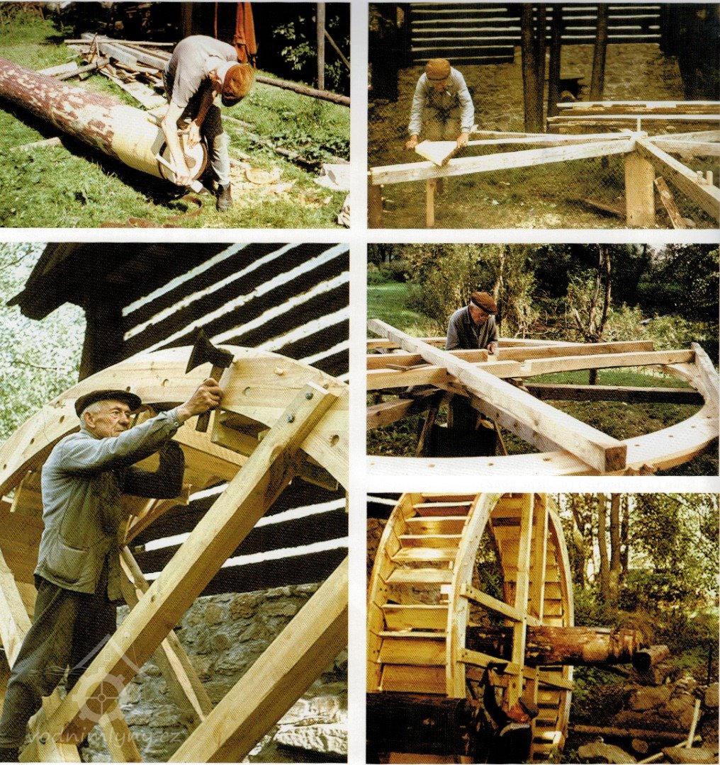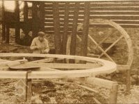 Sekerník Jan Vondráček (*1898) při stavbě vodního kola, 1970, © Luděk Štěpán