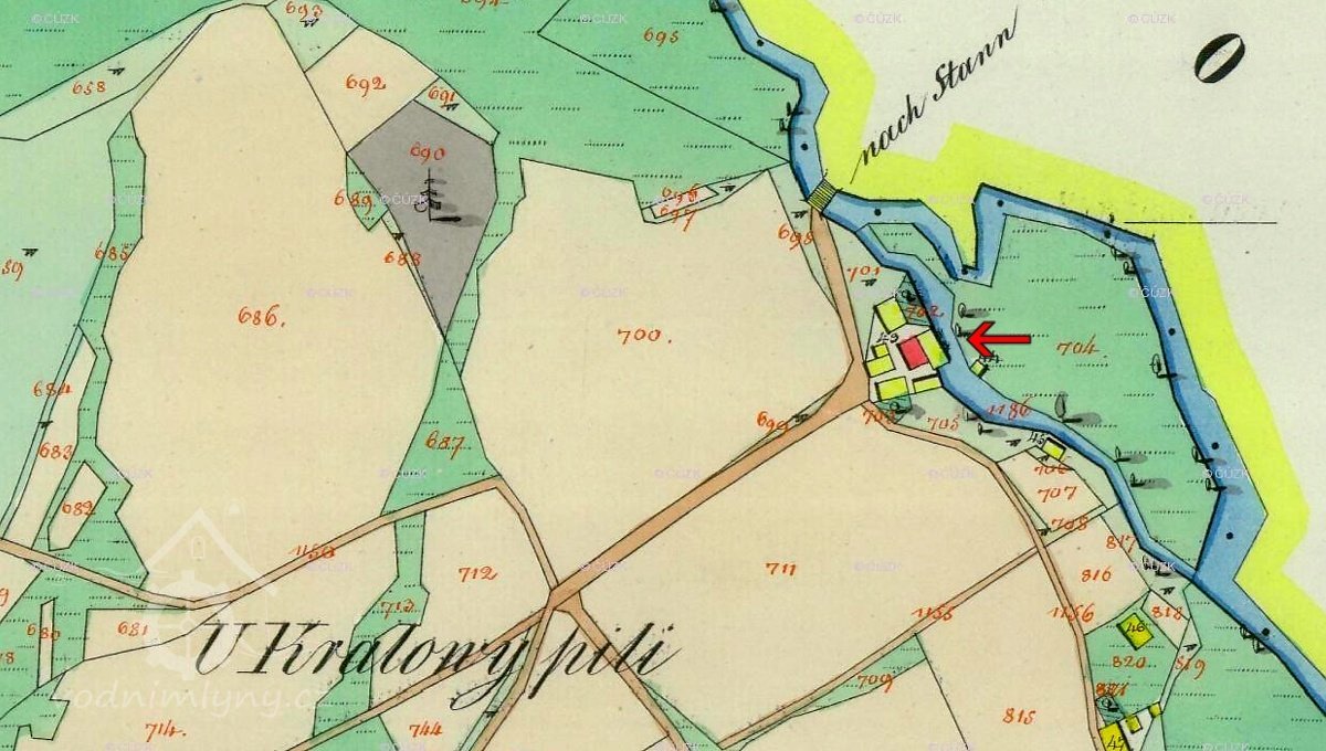 Císařský povinný otisk, výřez, 1839, © http://archivnimapy.cuzk.cz/