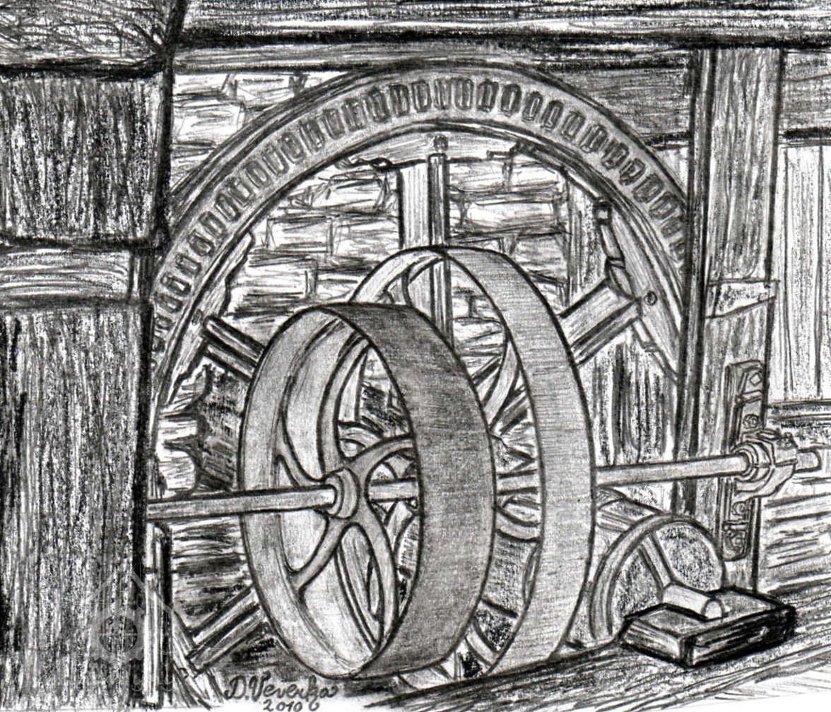 paleční kolo, 2010, © D. Veverka, (Prvky na obrázku: transmise, řemenice, převody)