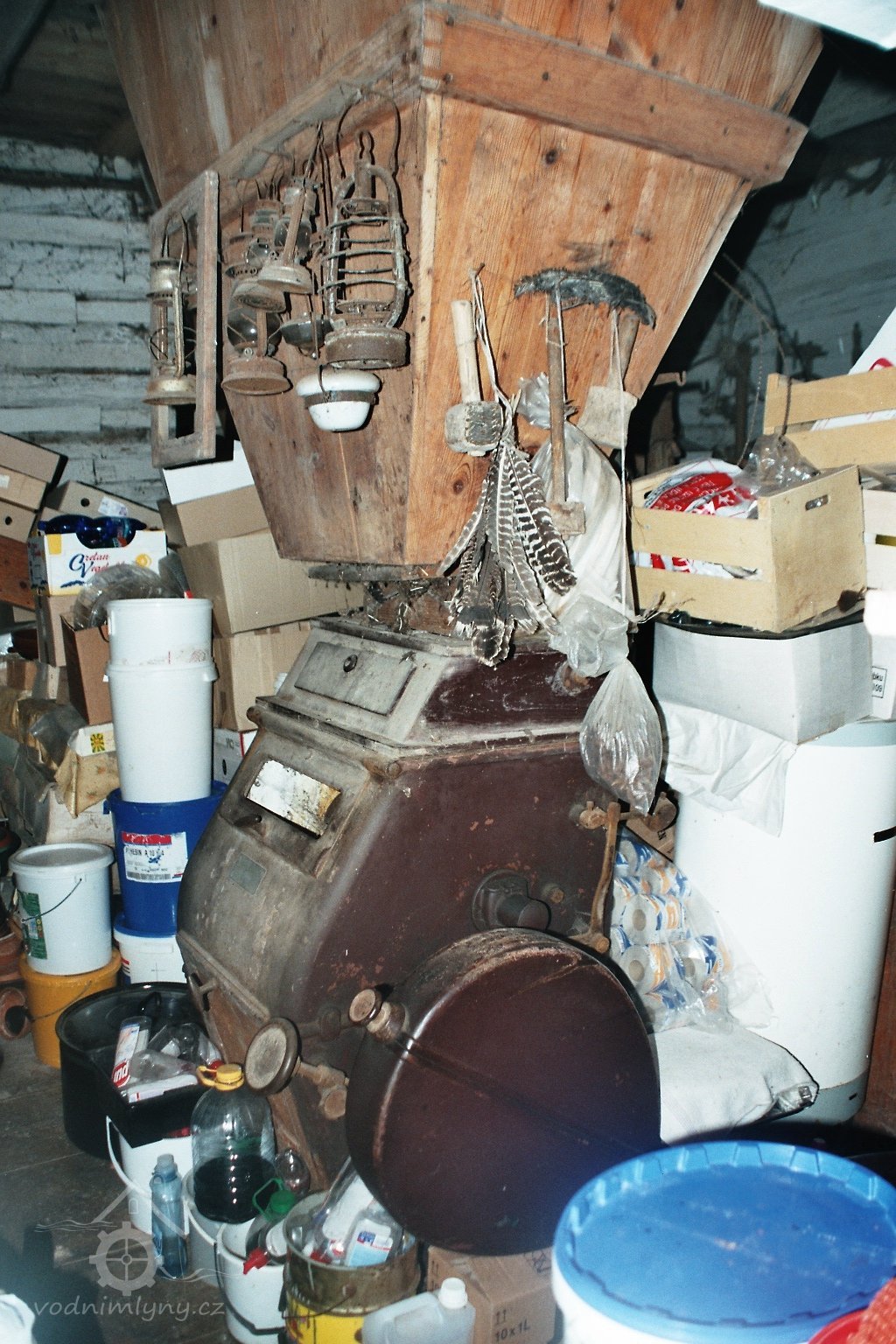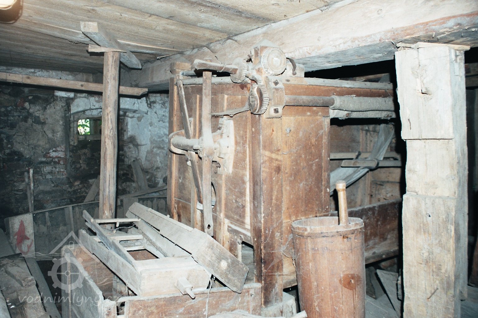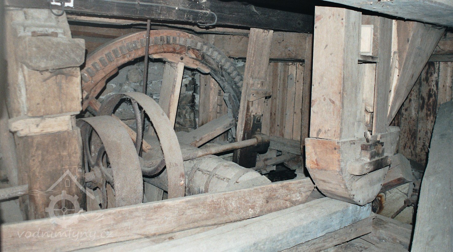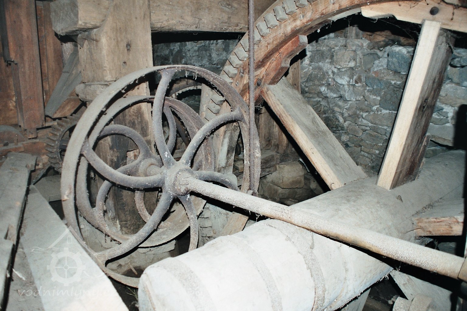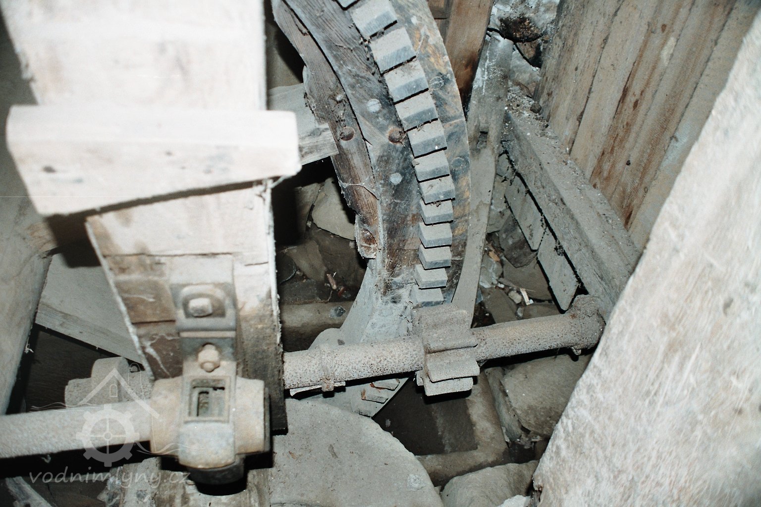 současný stav, 2010, © D. Veverka, (Prvky na obrázku: transmise, řemenice, převody)