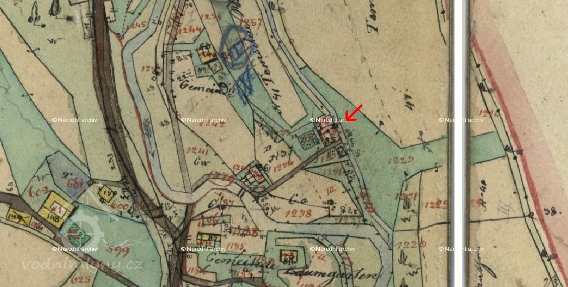 Císařský povinný otisk, výřez, 1839, © viz http://archivnimapy.cuzk.cz/