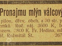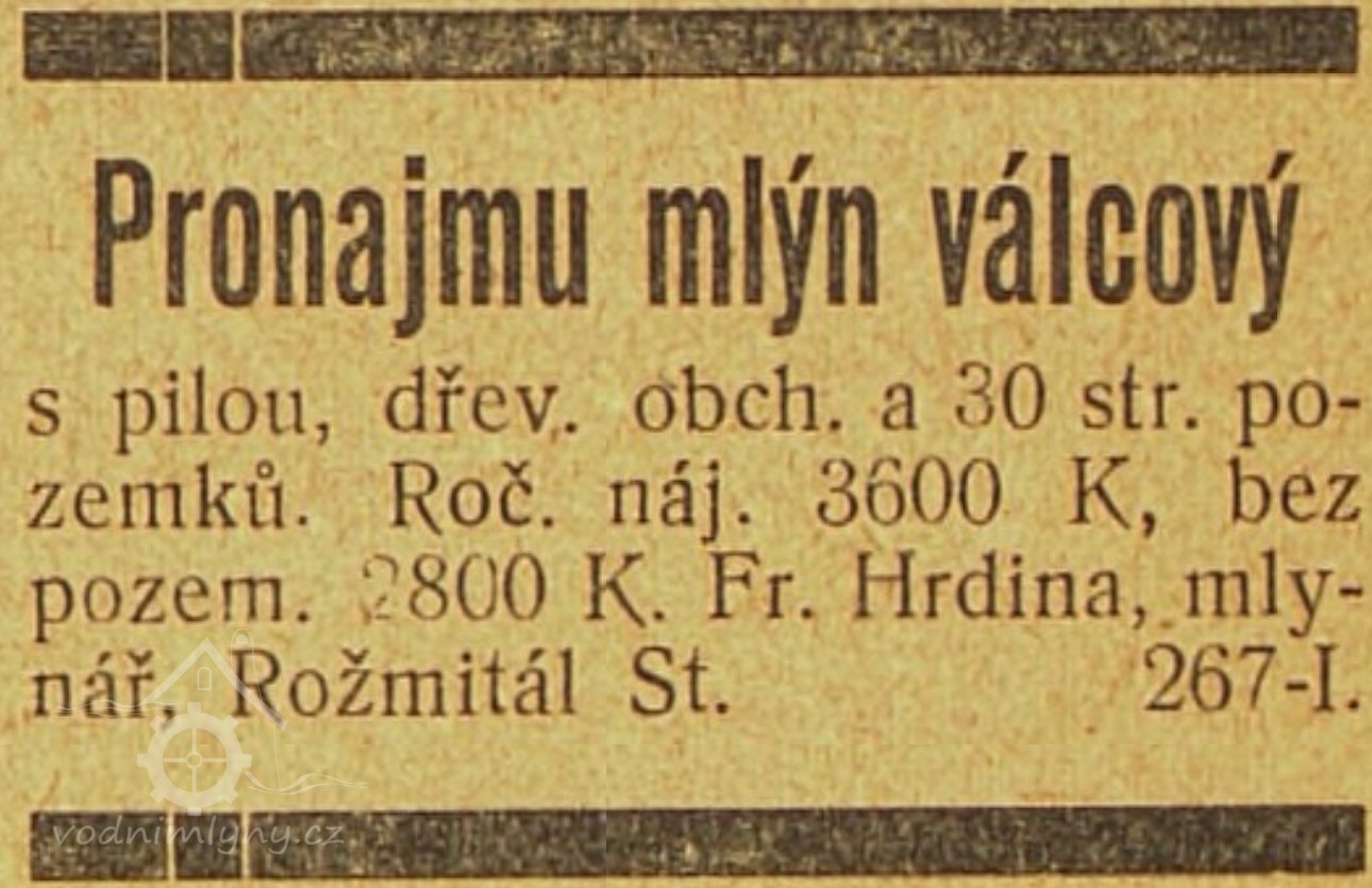 V roce 1951 vyučený pan Hrdina, pak po skončení mletí v Kovostaru. Spád asi 4,8 m. Vyvlastněno 1962. Až do roku 1989 tam mlynáři bydleli, pak do paneláku (chtěli ze mlýna udělat byty). Otec František Hrdina, jeho sestra Marie rozená Hrdinová následně Vočková, Matka se jmenovala Anna Sušková z Voltuše.