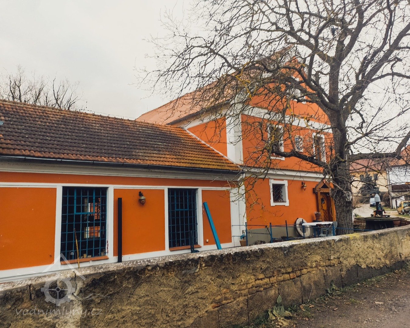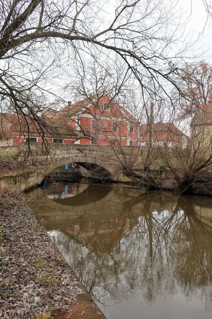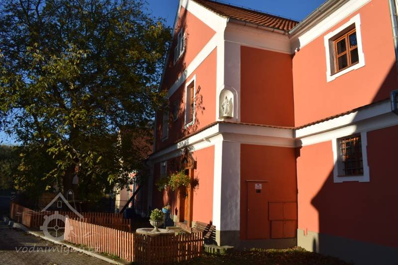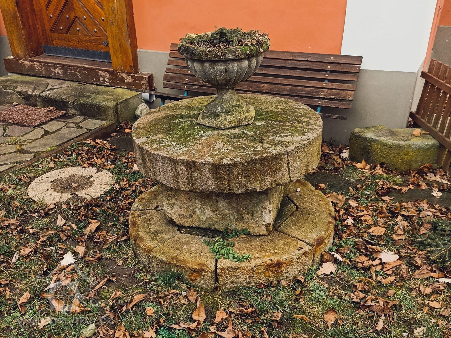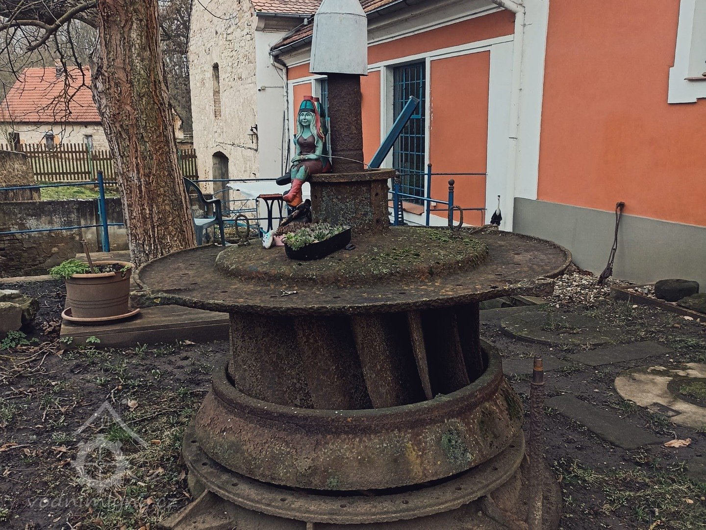 je umístěna před vchodem do mlýna.