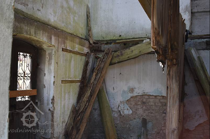 „Dle názoru NPÚ případná rekonstrukce objektu v základní hmotě (tzn. objekt staré mlýnice v roce 1885 rozšířený o přístavbu šalandy a nové mlýnice a v roce 1922 nastavěný o dvě patra) nemusí vyžadovat doplnění či nahrazení zaniklých a poškozených původních stavebních prvků a konstrukcí kopiemi v takovém rozsahu, že by výsledný objekt obsahoval takový podíl novodobých prvků a konstrukcí, že by již nemohl vykazovat dostatečné památkové hodnoty. Objekt staré mlýnice nastavěný o dvě patra je dle vizuálního interiérového průzkumu v dobré stavebně technické kondici. Nejsou zde patrny statické problémy, zdivo je stabilizované, stropní trámové konstrukce jsou bez napadení dřevokazným hmyzem, houbami a plísněmi. Do střešní konstrukce nezatéká, krov je v dobrém stavu, stejně tak krytina z falcovaného plechu. Poněkud horší situace je u přístavby šalandy a nové mlýnice z roku 1885. Zde je při dvorních nárožích poškozena střešní krytina z etemitových šablon a do objektu zatéká. Krokve mají zčásti uhnilá zhlaví. Musí se počítat s razantnější obnovou krovové konstrukce. Stále to jsou však řešitelné věci, známé z obdobných příkladů obnov kulturních památek, které při kvalitním řemeslném provedení nemusí ohrozit památkové hodnoty mlýna. Naprosto tristní situace je však u mladších přístavků strojovny, kotelny a elektrárny z roku 1903. Jedná se o pultové přístavky s pultovými střechami po vnějším obvodu mlýna. Přístavkům chybí kompletně konstrukce střechy, zdivo je při koruně destruované. Při obnově je nutné předpokládat razantnější zásahy a obnovy konstrukcí, případně respektovat pouze hmotové členění a obnovu provést způsobem vyjadřujícím soudobé pojetí obnovy. Dle názoru NPÚ, ÚOP v Josefově se jedná o méně významné přístavby, které ale souvisí s výrobní technologií mlýna, proto by alespoň nějakým způsobem měly být připomenuty. Připomínáme, že naše posouzení se neopírá o žádný autorizovaný statický posudek nebo projekční dokumentaci na obnovu mlýna. Vychází pouze ze zběžné prohlídky interiérů a exteriérů mlýna a ze zkušeností při obnovách typově obdobných památkově chráněných staveb.“