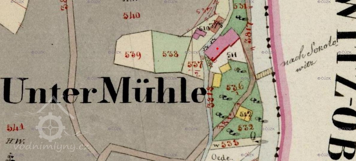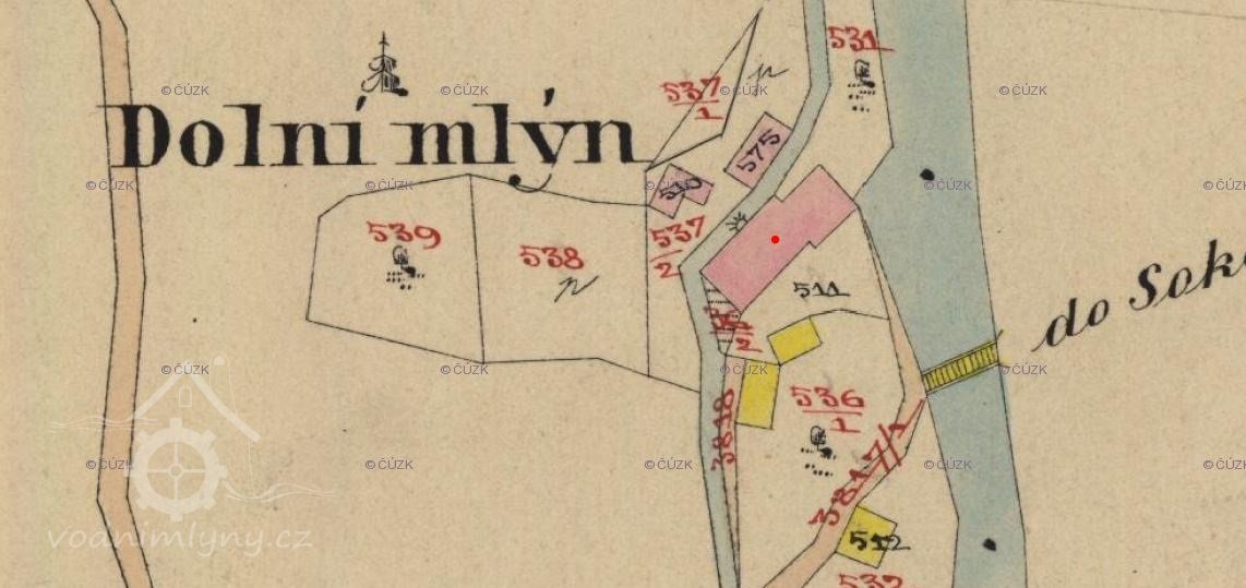 1553 - první zmínka o mlýnu jako Hnátovském, majetek mlynáře Adama Kladrubského