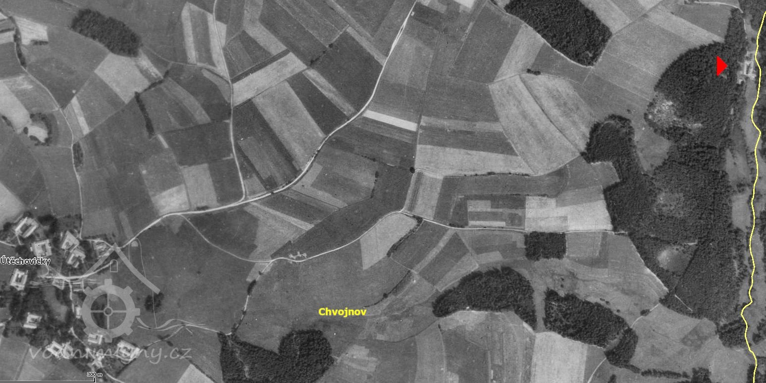 Letecké mapování z 50. let, výřez, 1953, © viz. kontaminace.cenia.cz