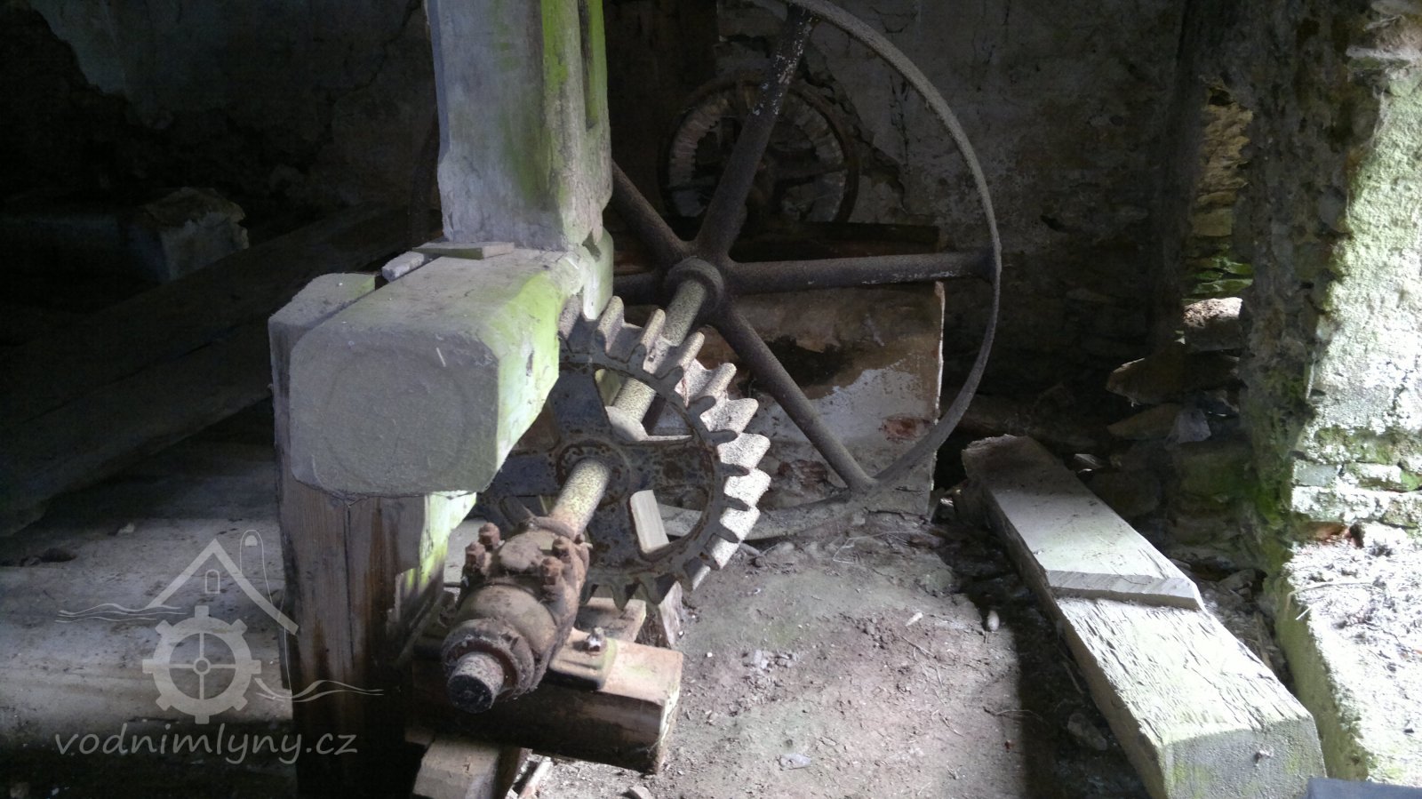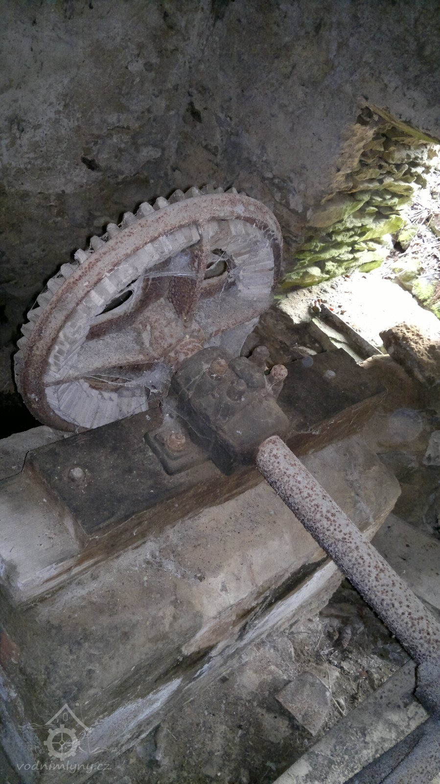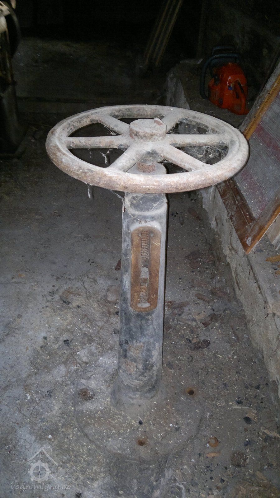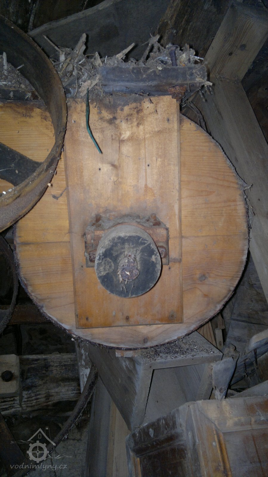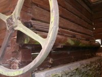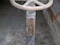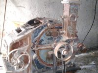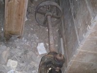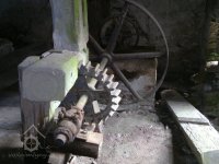 pozůstatek převodu od palečného kola, 2012, © D. Veverka, (Prvky na obrázku: transmise, řemenice, převody)