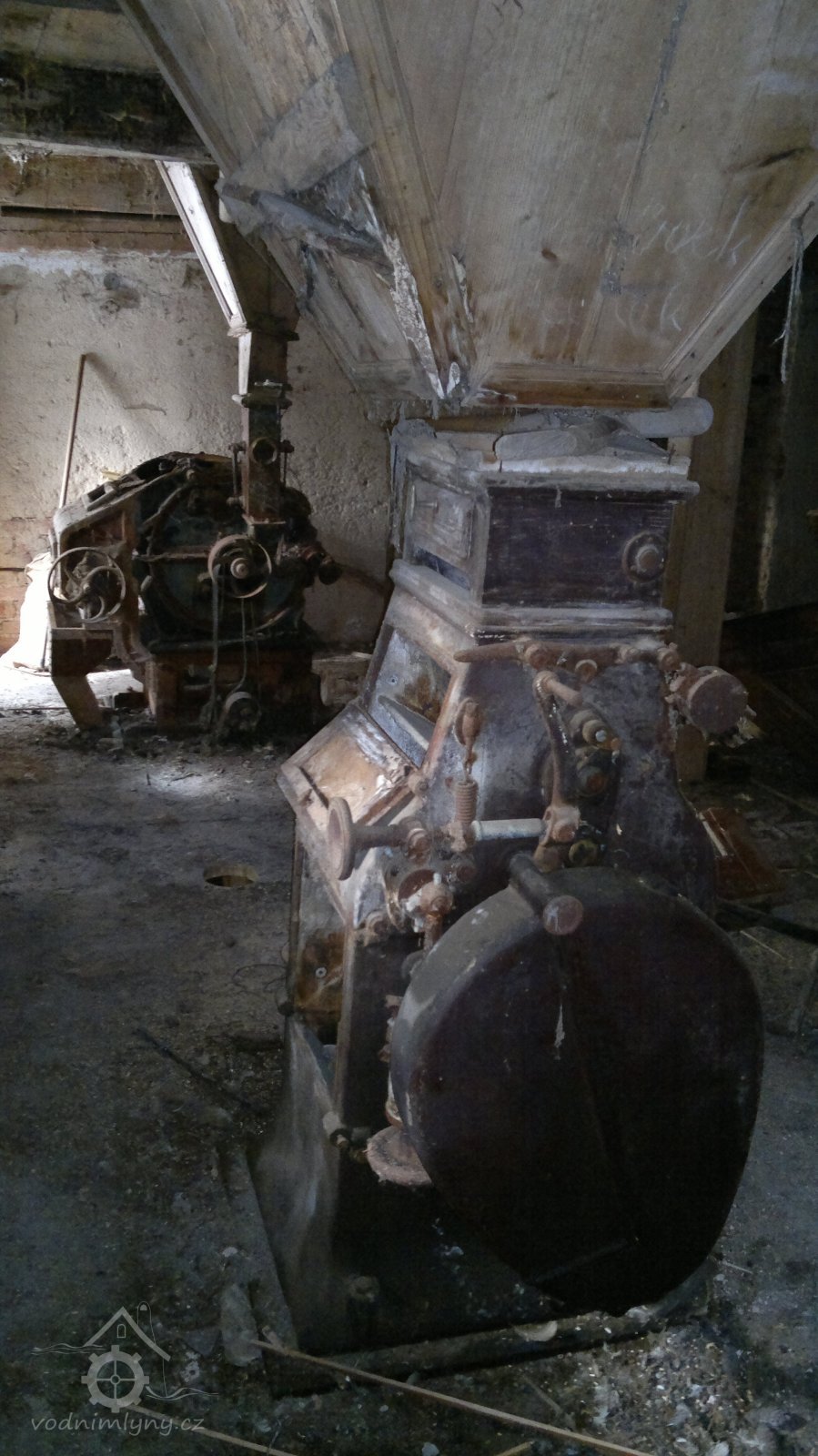 válcová podlaha - pohled, 2012, © D. Veverka, (Prvky na obrázku: válcová stolice, loupačka)