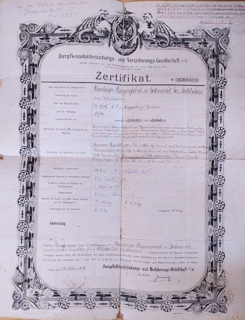 Zakoupen 1929 od Staudingerovy vagónky v Butovicích u Nového Jičína