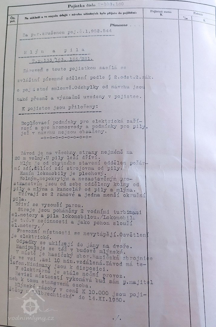 Důležitý je ale údaj o tom, jak tehdy mlýn vypadal. Byl od kamene vystavěný o trojím složení a dvěma stoupami. Další údaj potvrzuje, že tu byla i pila -  Jsouce při mlejně pila k řezání klád vystavěná, ta k užívání vrchnosti zůstane.