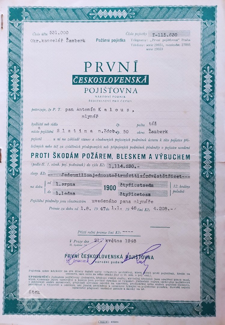 1.8.1951 ponechán v provozu jako poslední mlýn ve Slatině