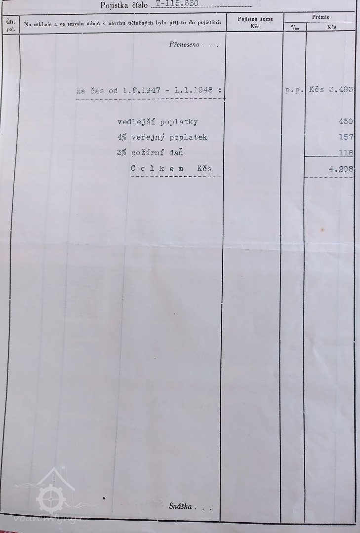 PopisV r. 1930 zde byly 2 Francisovy turbíny, průtok 1,785 m3/s, spád 4,12, výkon 73,18 k.