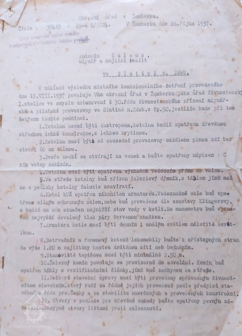 1930 mlýn, pila a elektrárna Antonín Kalous