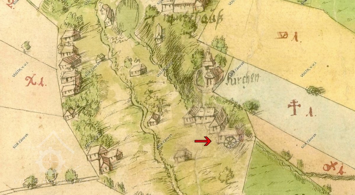 Mlýn je vyznačen již na rukopisné kolorované mapě Ing. Františka Xavera Preitsche z let 1731-1732. Jeho dvě složení tehdy poháněla dvě kola na vrchní vodu.
