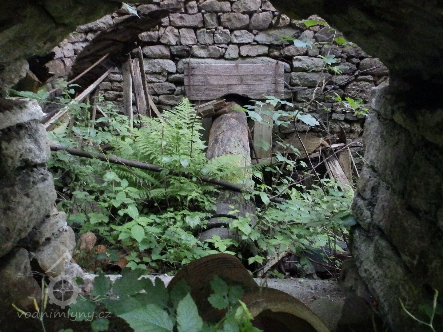 Pohled do lednice se zbytkem hřídele vodního kola, 07 2020, © doxa