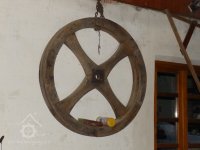 Dřevěné kolo z transmise, 07 2020, © doxa, (Prvky na obrázku: transmise, řemenice, převody)