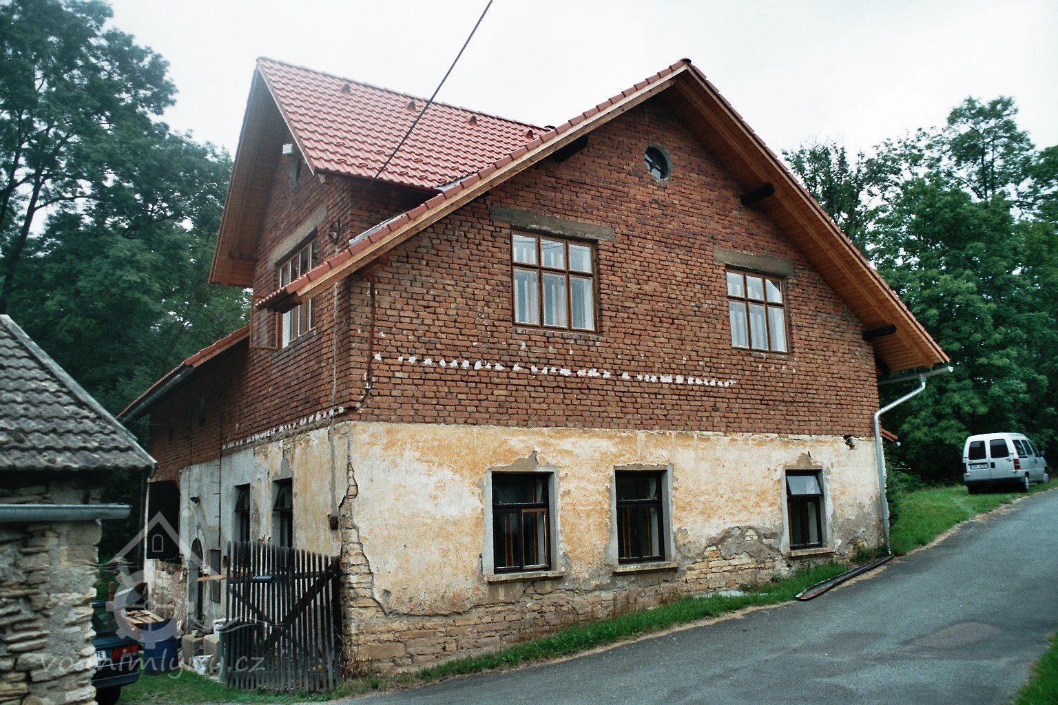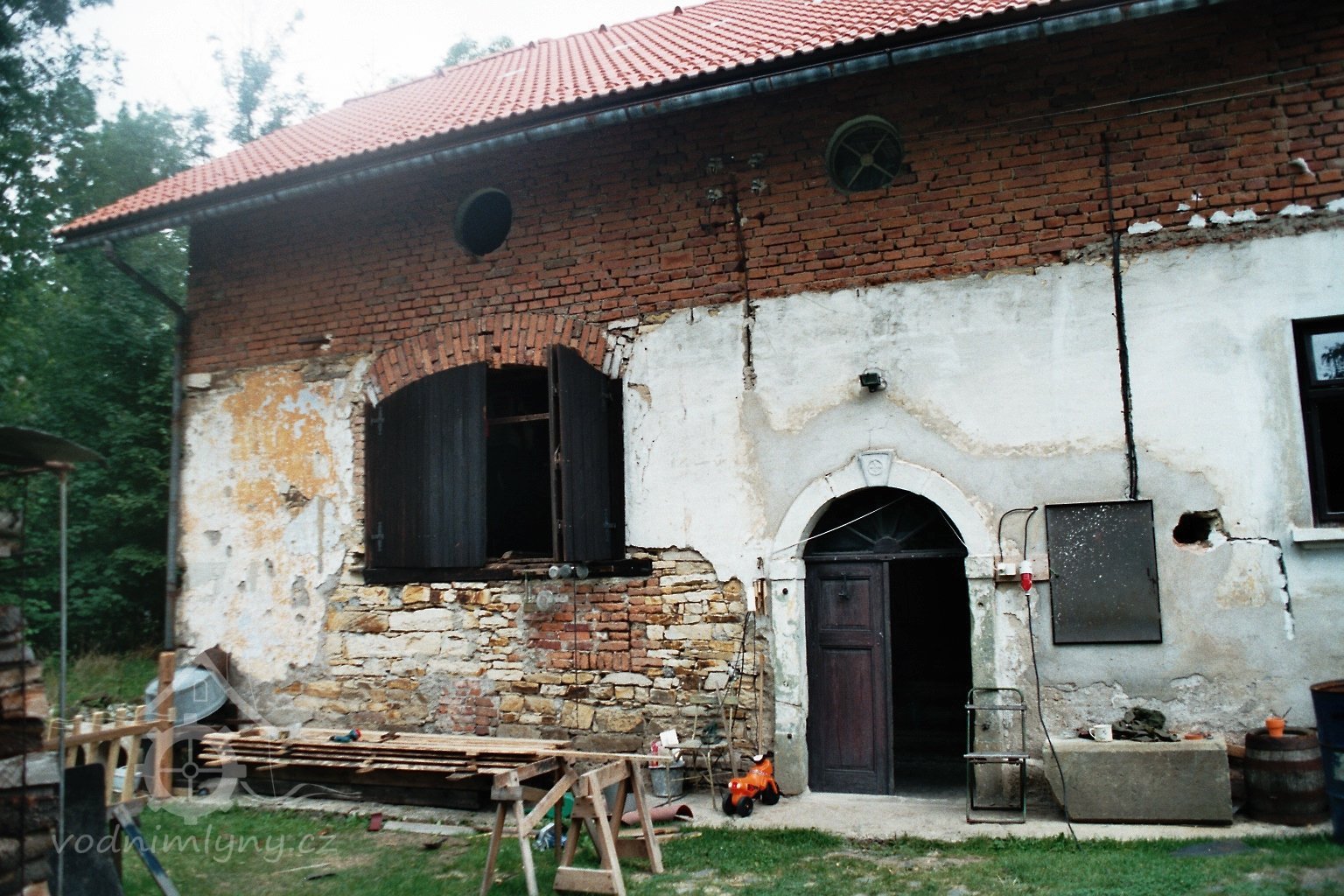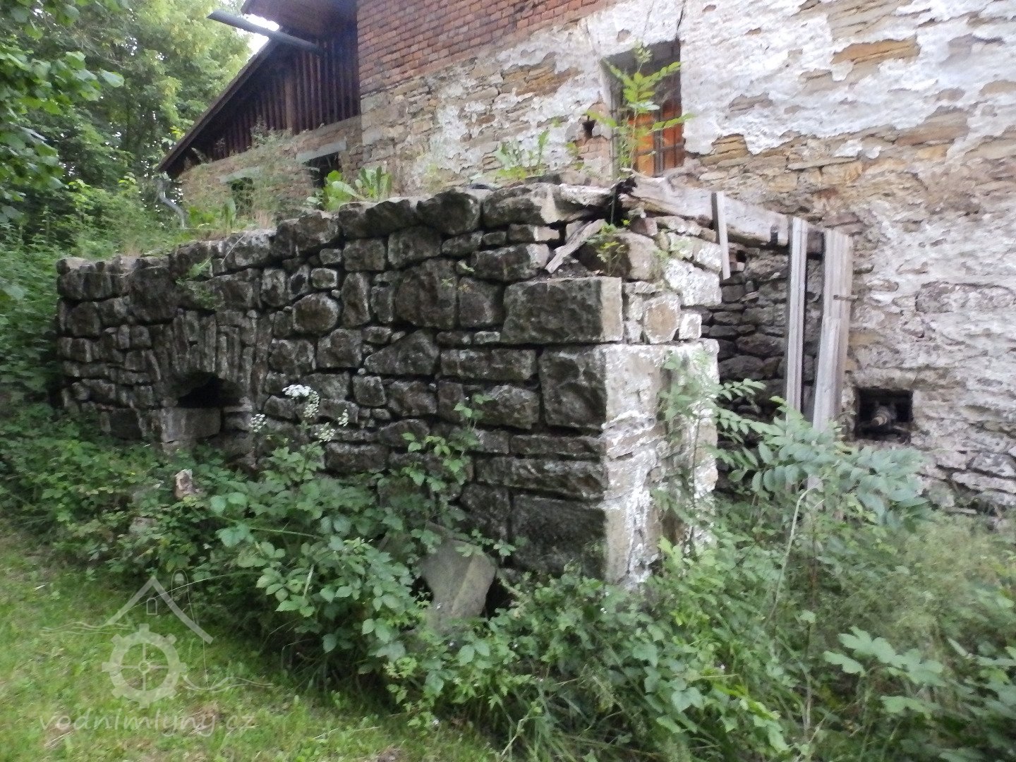 Klasicistní půlkruhový kamenný portál zajišťující vstup do mlýnice, 2010, © Urbánek, (Prvky na obrázku: kamenické prvky barokní a mladší)