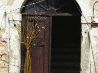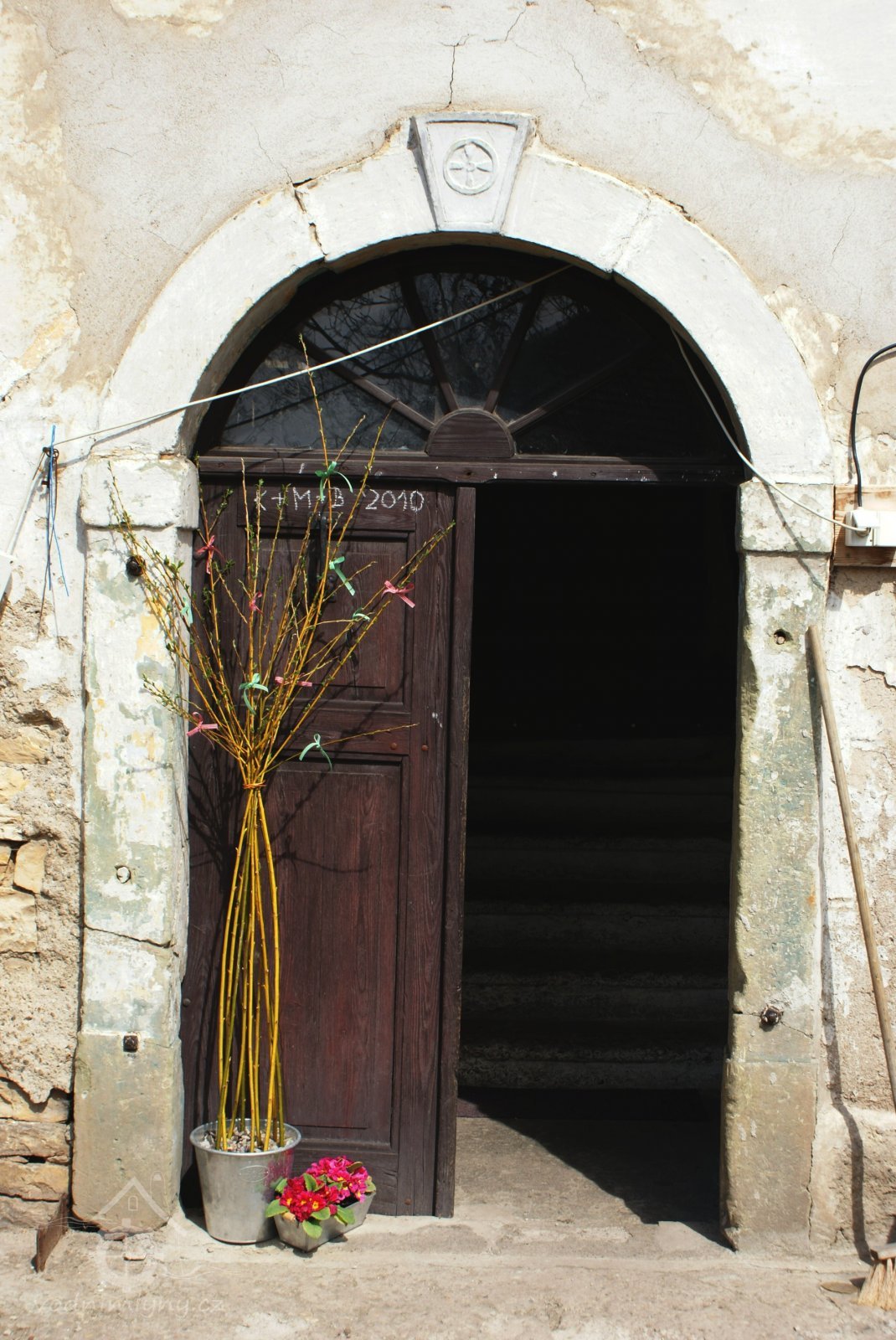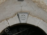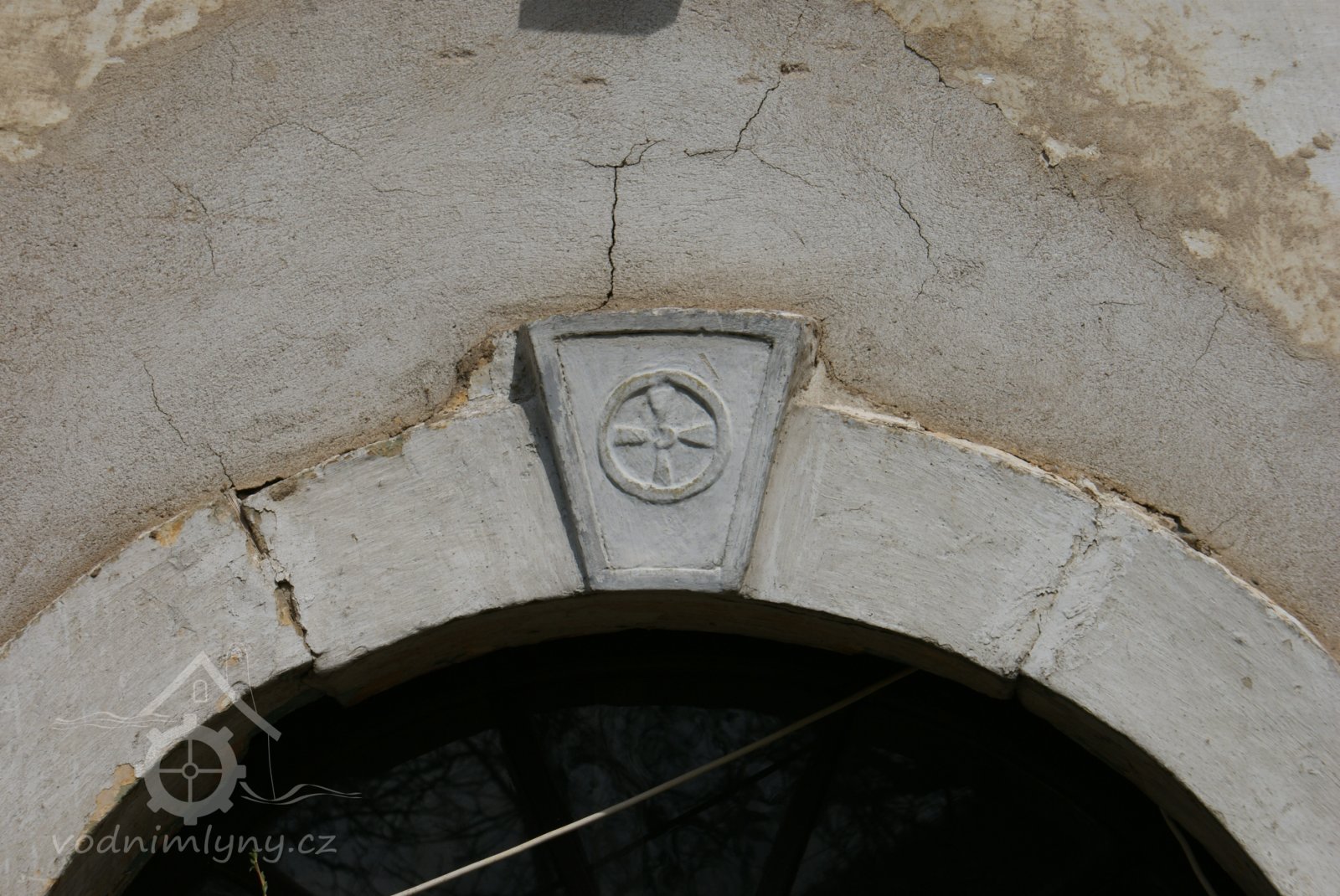 Symbol vodního kola (s věnci) "klenáku" klasicistního portálu, 2010, © Urbánek, (Prvky na obrázku: kamenické prvky barokní a mladší)