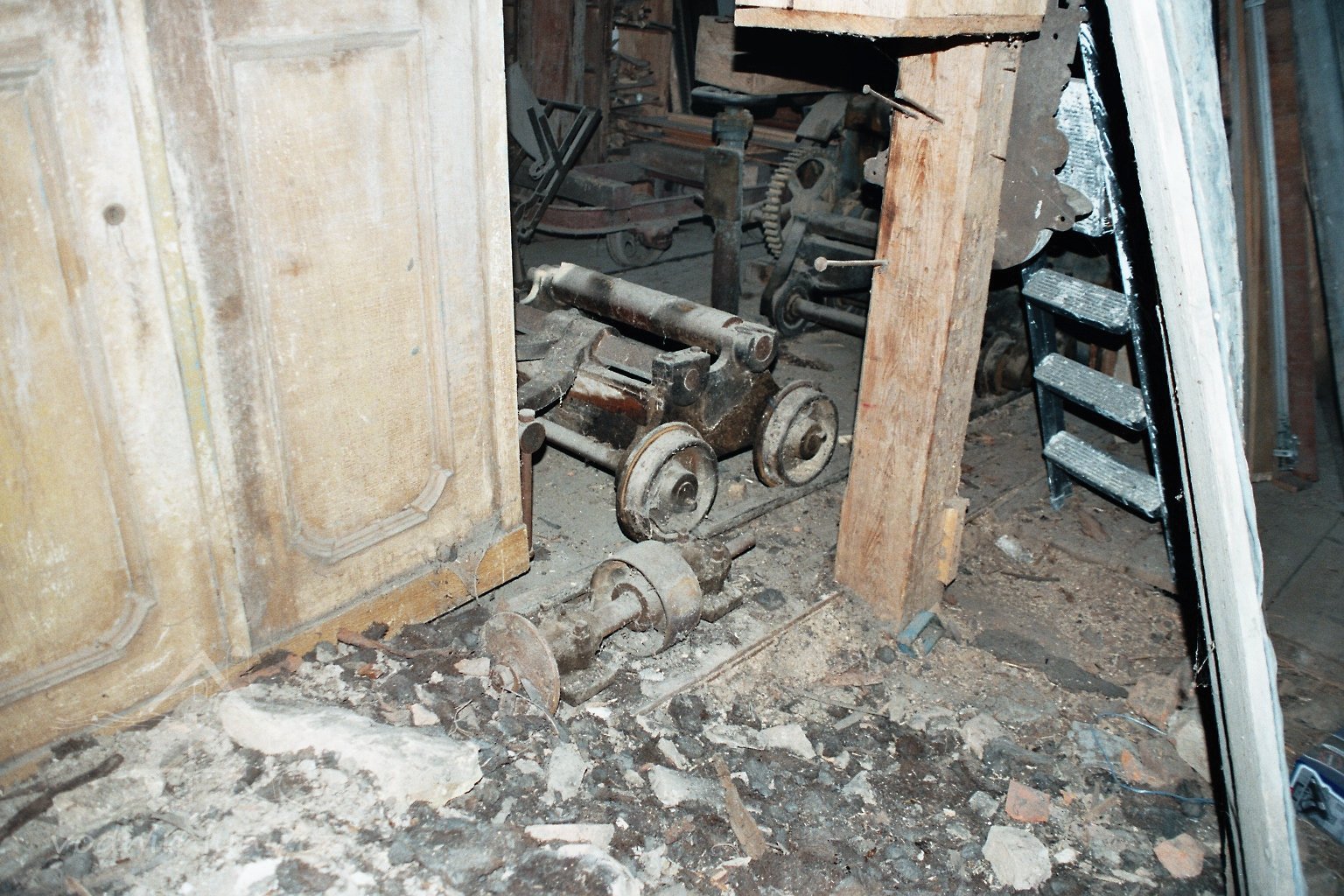 transmise na 1. podlaží, 2008, © David Veverka, (Prvky na obrázku: transmise, řemenice, převody)