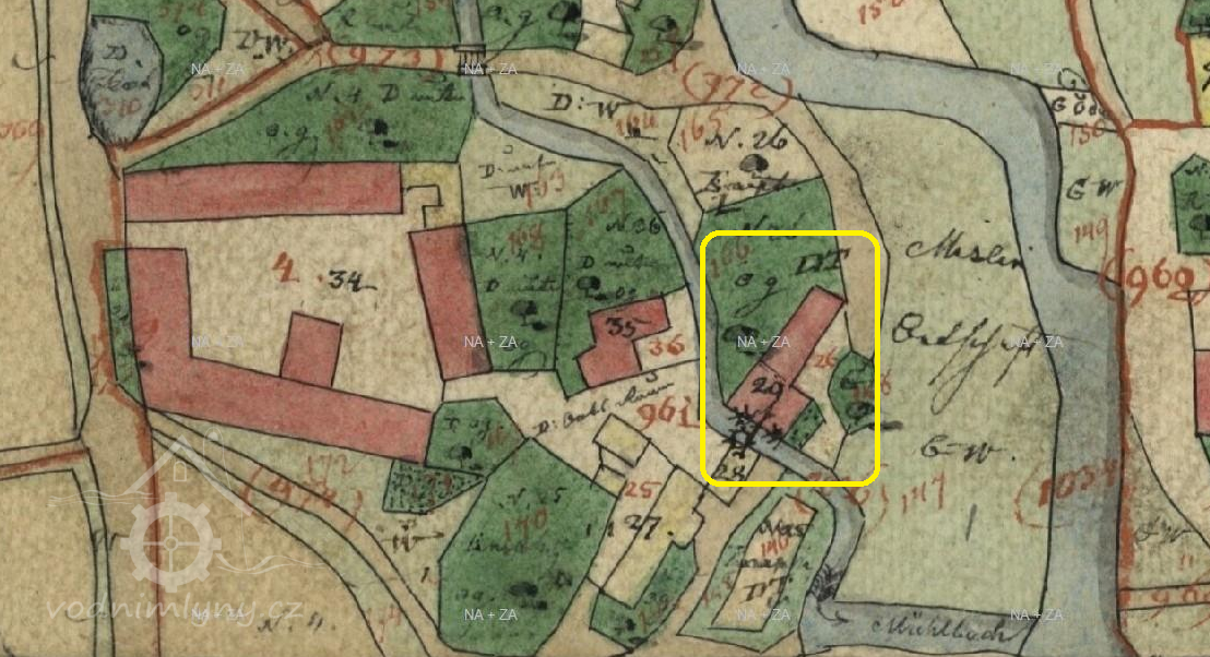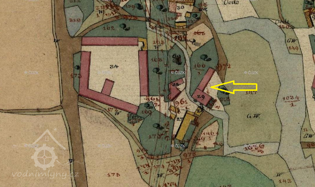 1822 převzala dcera Marie Vaňková s nast. manželem Dominikem Honsou, mlynářem v postupní ceně 2.000 zl. Nově uvedena pila, z níž se platí 10 zl. roční činže.