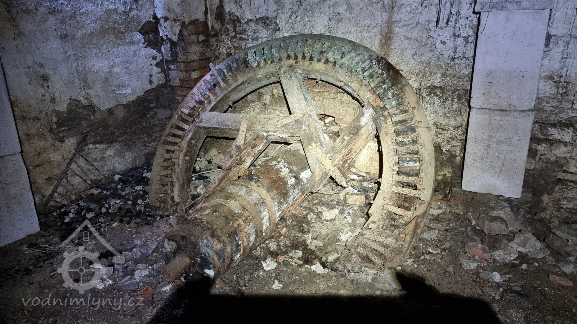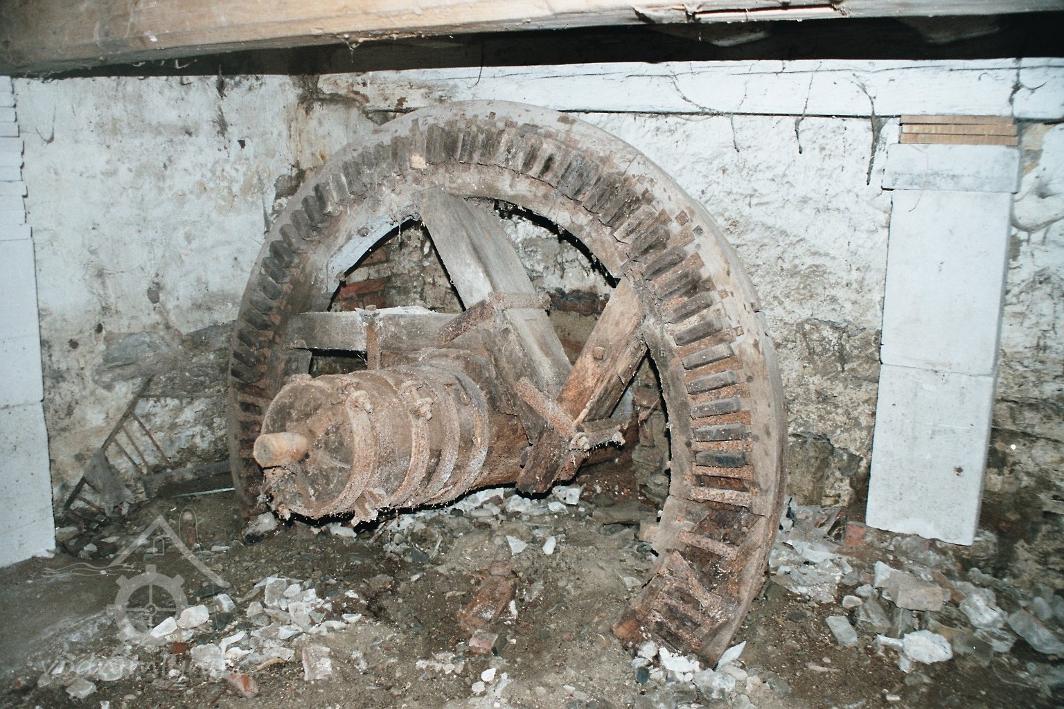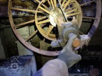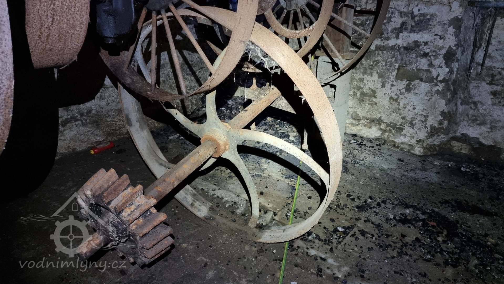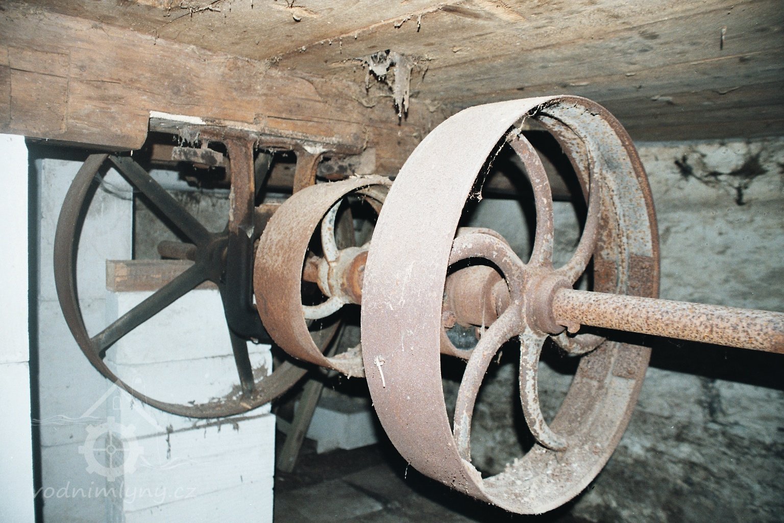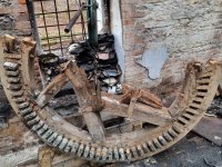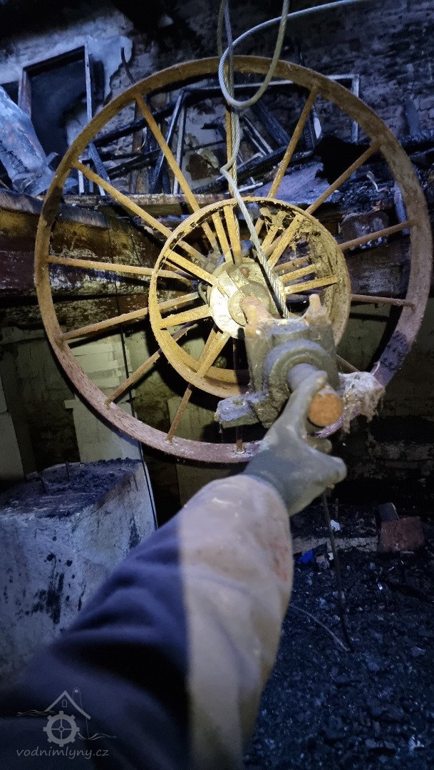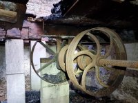 Trosky palečního kola, 01 2023, © David Veverka, (Prvky na obrázku: transmise, řemenice, převody - paleční kola, pastorky a cévníky (řemeslný výrobek))