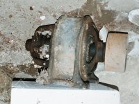 transmise a předlohová hřídel s pastorkem a řemenicí od palečního převodu, 2009, © David Veverka, (Prvky na obrázku: transmise, řemenice, převody)