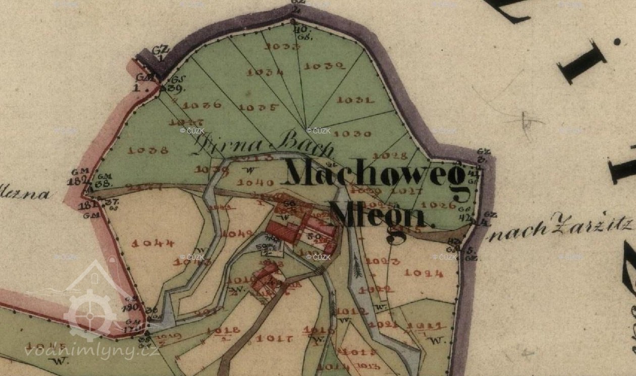 1790-1842 Jiří Machů, mlýn měl 2 kola, 1 stoupu a 2 pily