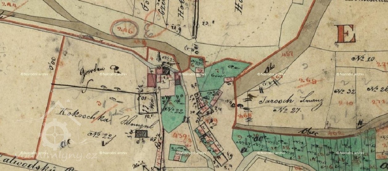 1908 majitel Marie Volgnerová, osazena vodní značka MV 1908