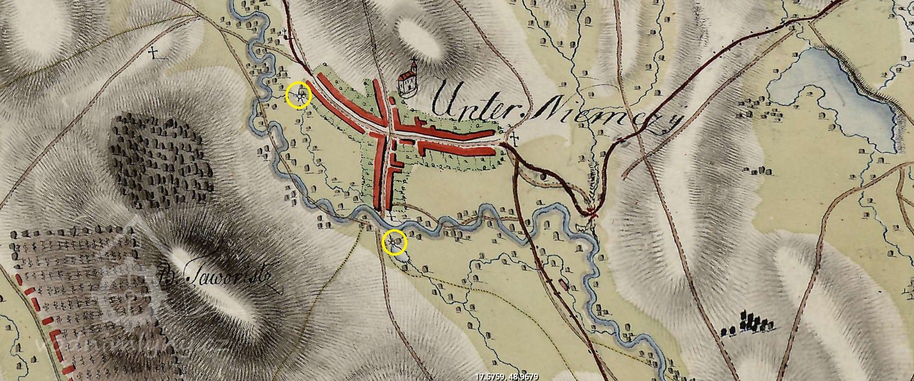Dle mého názoru je Dolním mlýnem míněn dnešní čp. 15, jelikož Padělský mlýn náležel ke Slavkovu, nikoliv k Dolnímu Němčí, zbývá pro Jana Fulneckého pouze tento mlýn (resp. zaniklý předchůdce, který stával na jeho místě)