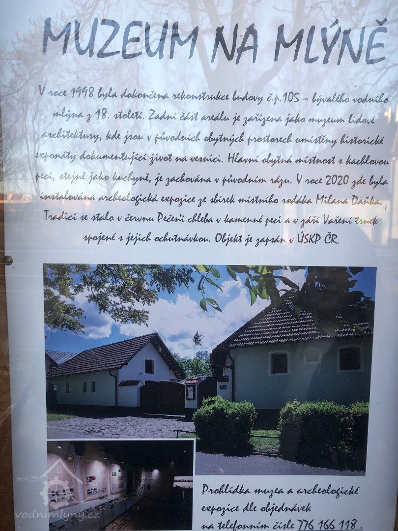 V roce 1998 byla dokončena rekonstrukce starého mlýna. Část byla vybavena původními dochovanými nástroji, které mlýnu věnovali obyvatelé obce. Jedná se o pozoruhodnou památku lidové architektury, zapsanou ve státním seznamu památek. Jde o soubor budov vodního mlýna na Oklukách, vybudovaných v 18. století. Zadní část areálu mlýna, tedy domu čp. 105, je zařízena jako muzeum lidové architektury. V původních obytných prostorách si prohlédnete nářadí, zemědělské stroje a další pomůcky neodmyslitelné od života na vesnici. Obytná část byla upravena do původní podoby.