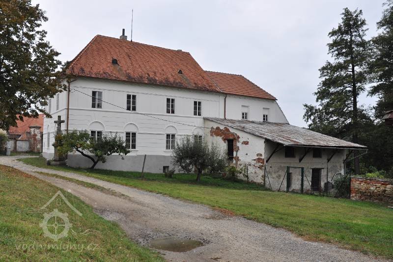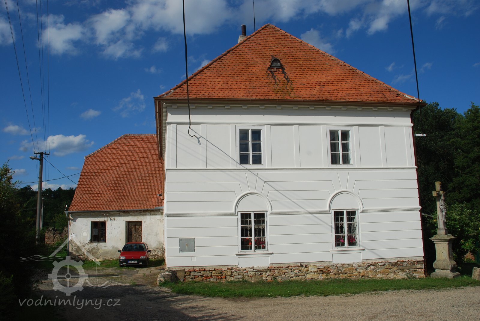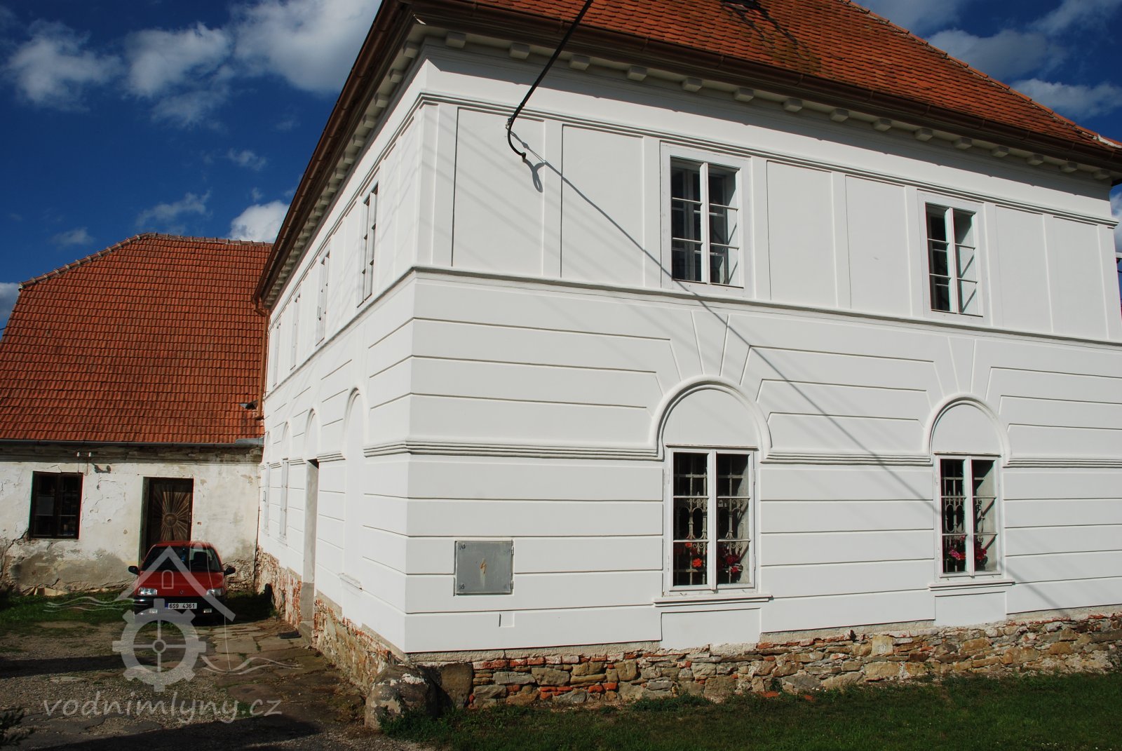 Vodni mlýn na řece s mlýnicí a patrovým obytným stavením přímo naproti zámku. Celá disposice mlýna a obytného stavení vznikla přístavbami v různých časových údobích, tvoří kříž s nestejnou délkou ramen. K silnici vysunuta hmota obytného stavení s obytnými místnostmi pod plochými stropy v přízemí i v patře. Kolmo k ní z pravé strany přistavěna mlýnice, rozdělená do několika pater v technicky náročně zpracovaném dřevěném krovu. Přízemní síň mlýnice je zastropena trámovým stropem mohutných profilů podpíraných středním průvlakem na dvou podporách. Pravý sloup je ukázkou dřevěného stavebního nosného článku bohatého tvarosloví a vynáší rovněž profilovaný dřevěný krakorec, podpírající trámový průvlak. Dřevěné schodiště vede do patra, ve kterém je uloženo též mlýnské zařízení válcového systému. Pod terénem rovněž strojovna, přímo sousedící s náhonem. K této části hlavní - jsou přistavěny další přístavky, dnes nepoužívané.