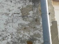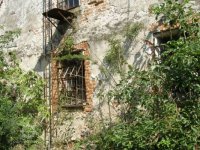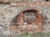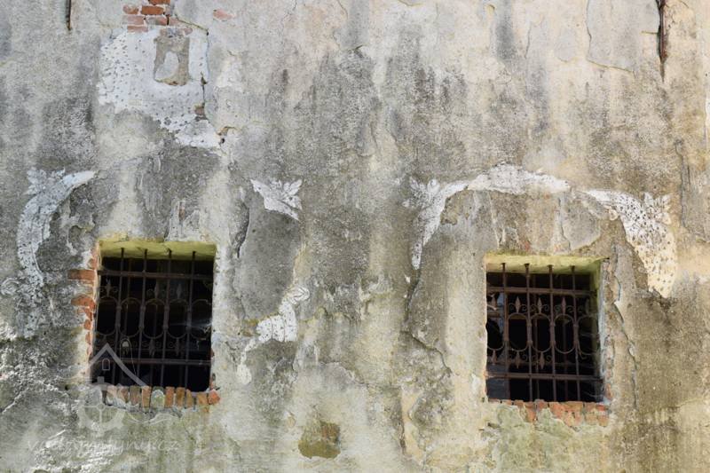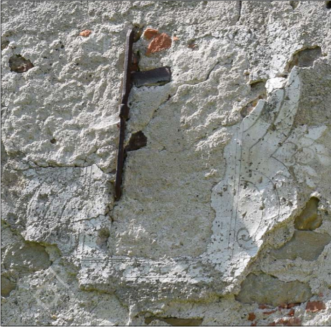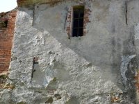 Zcela vlevo (na jihovýchodě) je jedno zazděné pravoúhlé okno, jež nebylo později nahrazeno oknem větším. Jeho rozměry ale nejsou totožné s původní velikostí větších oken popsaných výše. Kolem otvoru lze pozorovat fragmenty výzdoby ryté v omítce, jejíž podoba je srovnatelná s předchozí. Dobře je zde patrná rytá podokenní římsa, která je u předchozích oken jen tušená. V posledním podlaží je vlevo úzké stojatě obdélné okno s šestitabulkovou dřevěnou výplní. Kolem okna je cihlové zdivo, omítky s výzdobou nejsou patrné. Dále vlevo směrem na jihovýchod lze pozorovat dvě zazděná nebo pouze rytými linkami vymezená okna primárně slepá. V pekované omítce jsou linie oddělující plochy nátěrů s nepatrně odlišným odstínem. Pokud linie vymezují zazděná okna, musela by být poměrně malých rozměrů.
