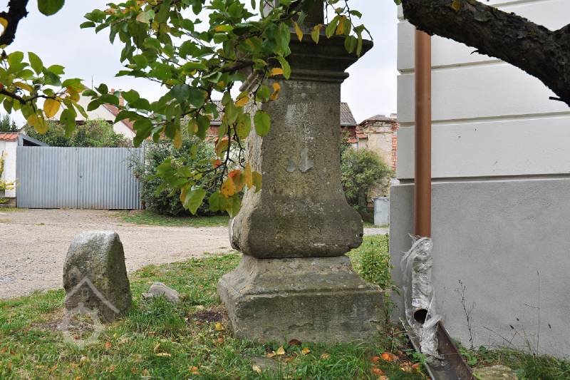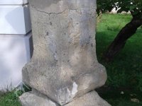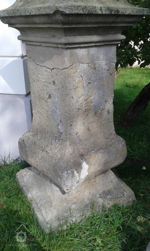 Na čtvercové základně čtyřboký sokl, ve spodní části volutově rozšířený. Na přední straně rytý rám kasulového tvaru.