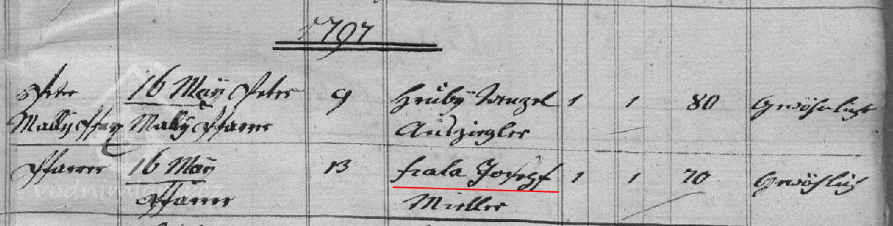 16. 5. 1797 zemřel Josef Fiala, mlynář, 70 let. (RR)