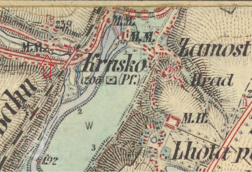 Nejstarší zmínka: „léta Páně 1476 prodal Jan Tovačovský z Cimburka a na Mladé Boleslavi (nejvyšší hejtman moravský, od roku 1475 nejvyšší sudí a od roku1479 nejvyšší komorník) Krnsko, jež předtím roku 1464 koupí připojil Jindřich z Michalovic k panství boleslavskému, Janu Vančurovi z Řehnic, vymíniv si mlýn pod sv. Jiřím a most se clem na Jizeře v Zámostí“.(MH)