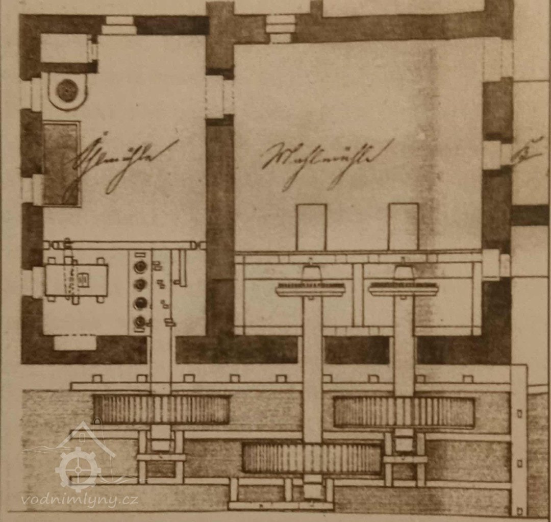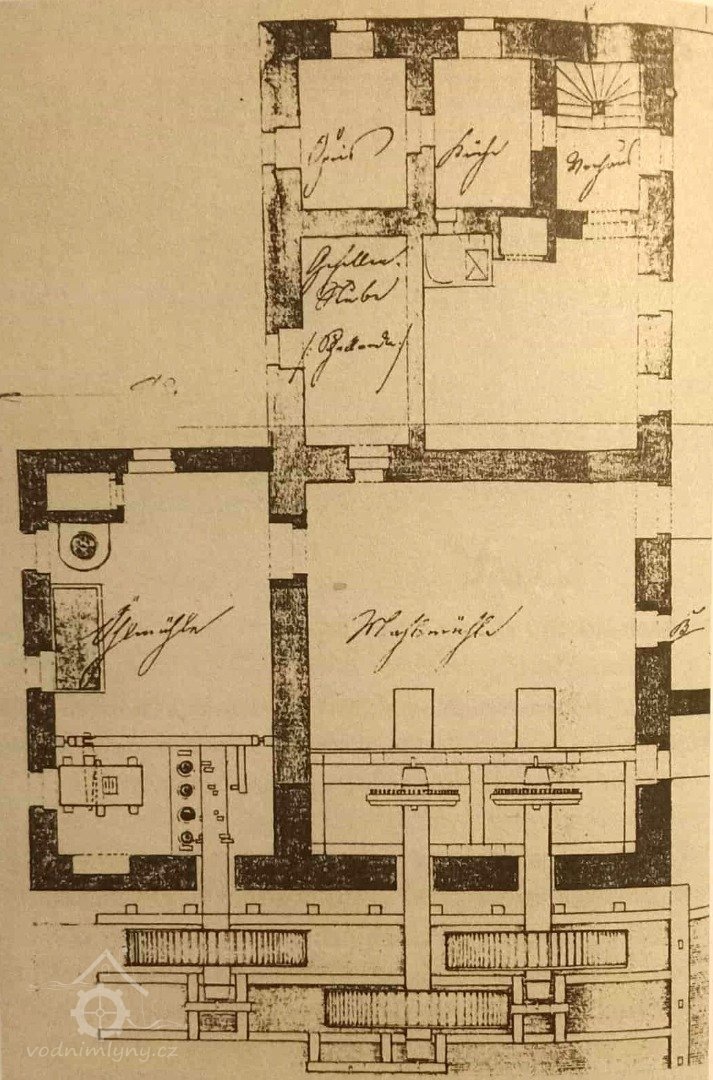 Mlýn o dvou složeních a olejna se stoupami a mechanickým lisem. Na mlýnici navazuje obytná část mlýna, vlevo od hlavní světnice je šalanda o velikosti 3,2 x 1,8 m (na plánu označená Gesallen Stube /Schallanda/). Ta se účelně přimyká ke stěně chlebové pece, která ji přihřívá.