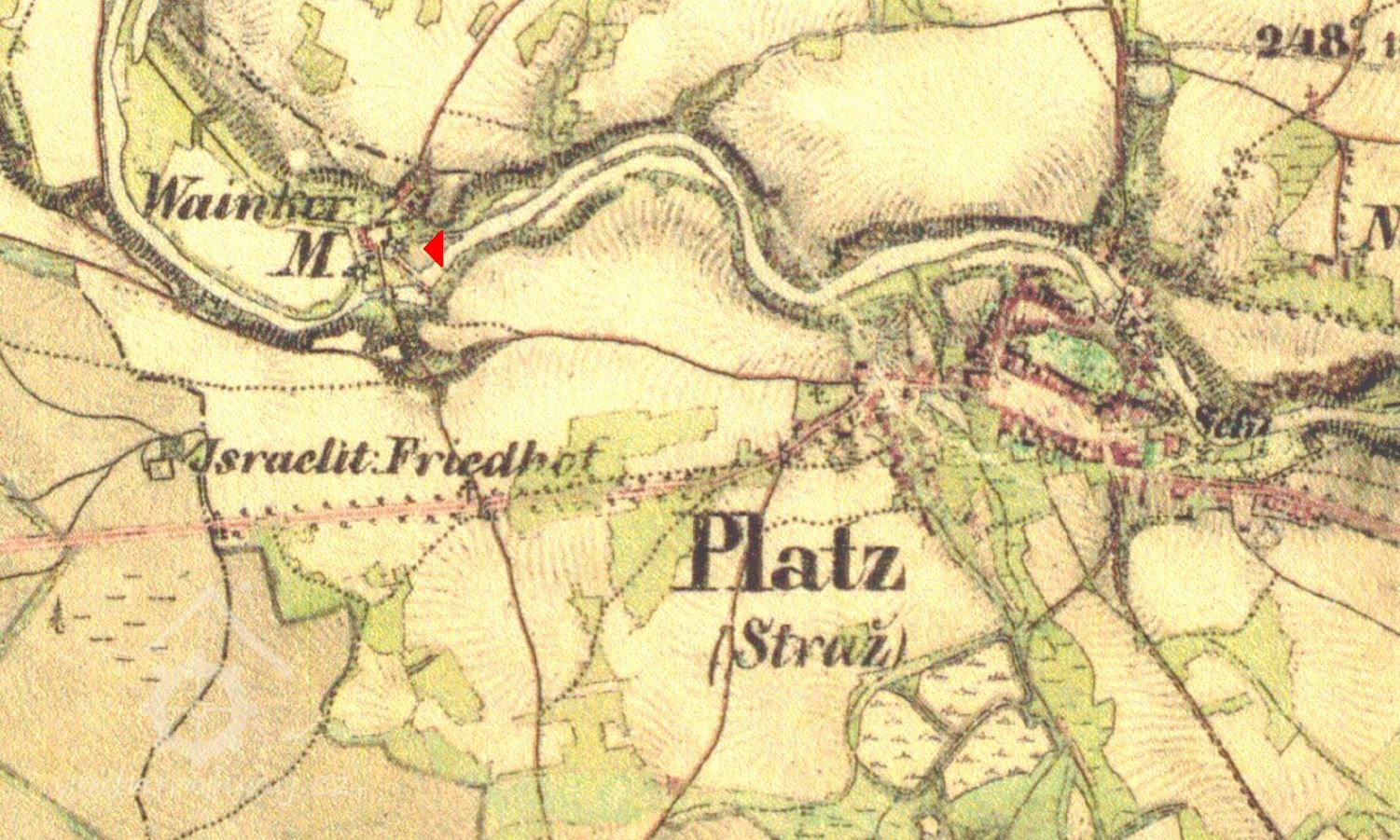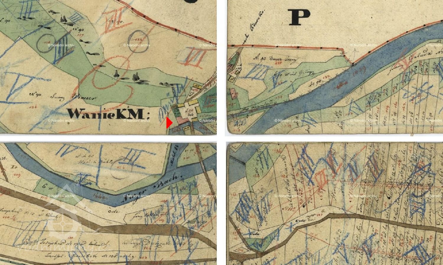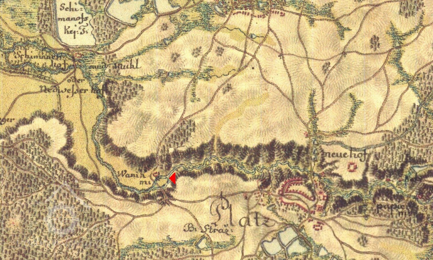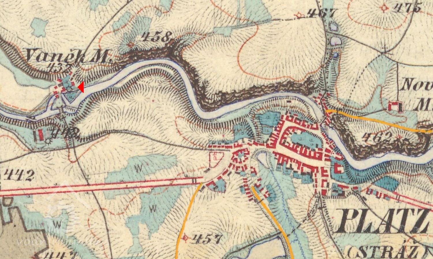 Na Mapě panství Stráž s hranicemi panství třeboňského, novobystřického a jindřichohradeckého z r.1667 – vyznačen Vaňkův mlýn se dvěma koly