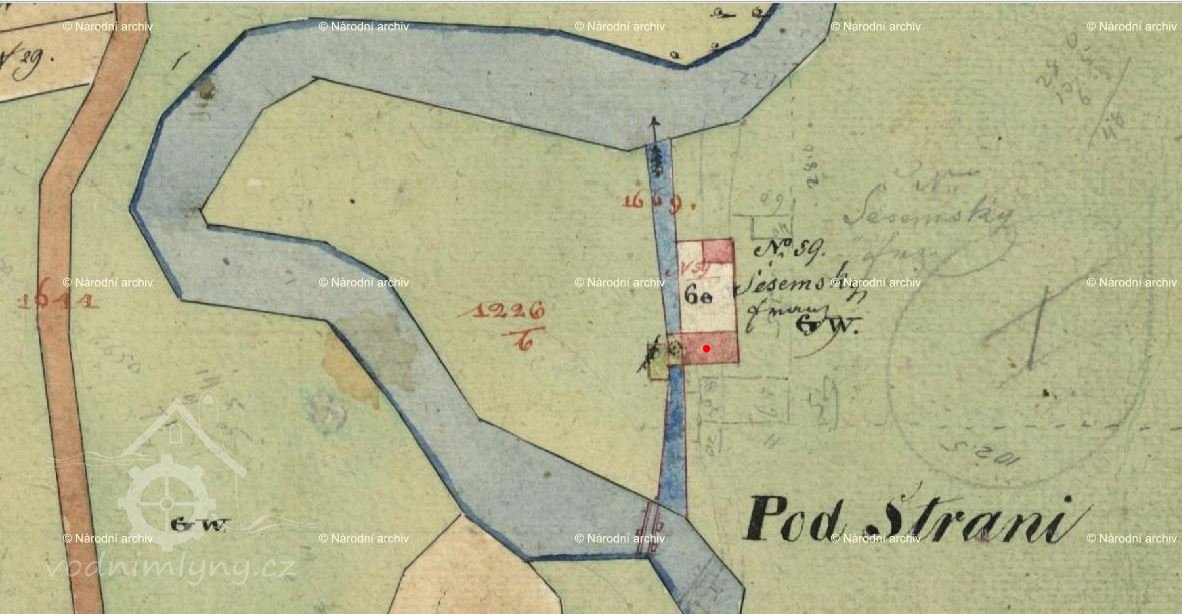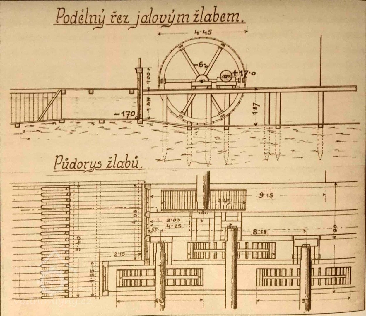 Počet a druh vodních motorů: 1 turbína Girard, 4 kola na spodní vodu