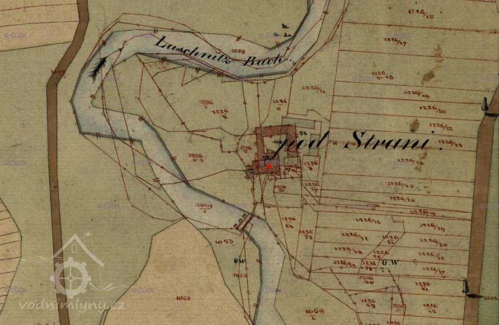 Str.171 Majitelé Lužnického mlýna byli: 1) Kožíšek, který postavil vodní dílo a pilu, na které seřezal potřebné dříví ku stavbě mlýna. 2) Sezemský – ku mlýnu postavil zadní část mlýnice směrem do dvora, kde je dosud v čelné zdi dobřeznatelný letopočet 1863. 3) Dcery Sezemského. 4) František Měřička mlynář z Hutí Stříbrných, obec Dobronice, okr. Tábor. Měřička mlýn rozšířil, otevřel zde krupařský krám. Mlýn měl nyní čtvero složená českých kamenů, pohon strojů i pily obstarávala 4 dřevěná kola. 5) Syn předešlého Frant. Měřička, rozšířil vodní pohon o malou turbínu o síle 8 HP, která poháněla šrotovník a v r.1913 přestavěl mlýn na válcový, tak zvaný „americký“. 6) V třetí generaci převzal mlýn Josef Měřička, ten však následkem rodinných nesvárů, jakož i vlivem špatných kamarádů, prohýřil a zadlužil celý majetek. 7) Hospodářské družstvo jako největší věřitel dalo celý podnik do prodeje a v dražbě jej koupilo. Později část pozemků odprodalo různým zájemcům. 8) Josef Tájek z Růtova u Lišova koupil v lednu 1937 od Hospodářského družstva v Třeboni pozemky, pilu a mlýn.
