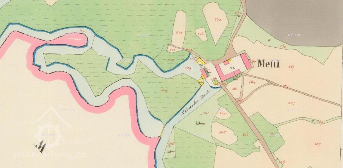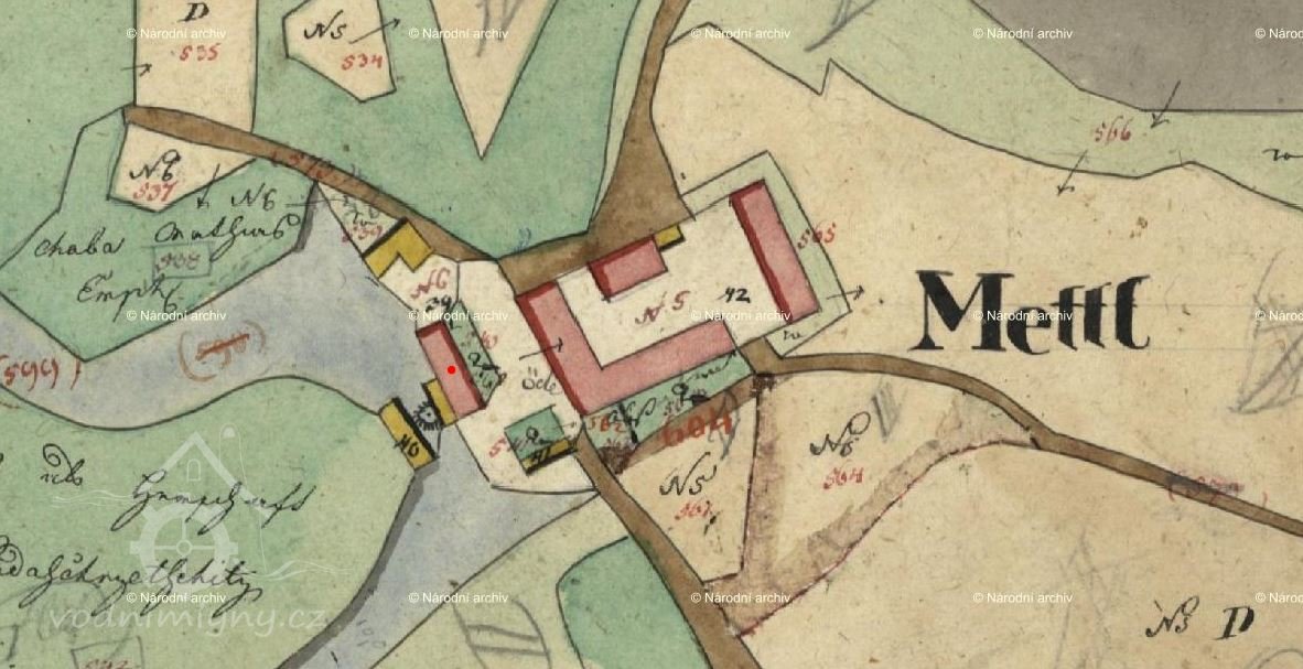 Popis1930: 4 kola na spodní vodu, hltnost 1,06 m3/sw, spád 1,18 m, výkon 16 HP