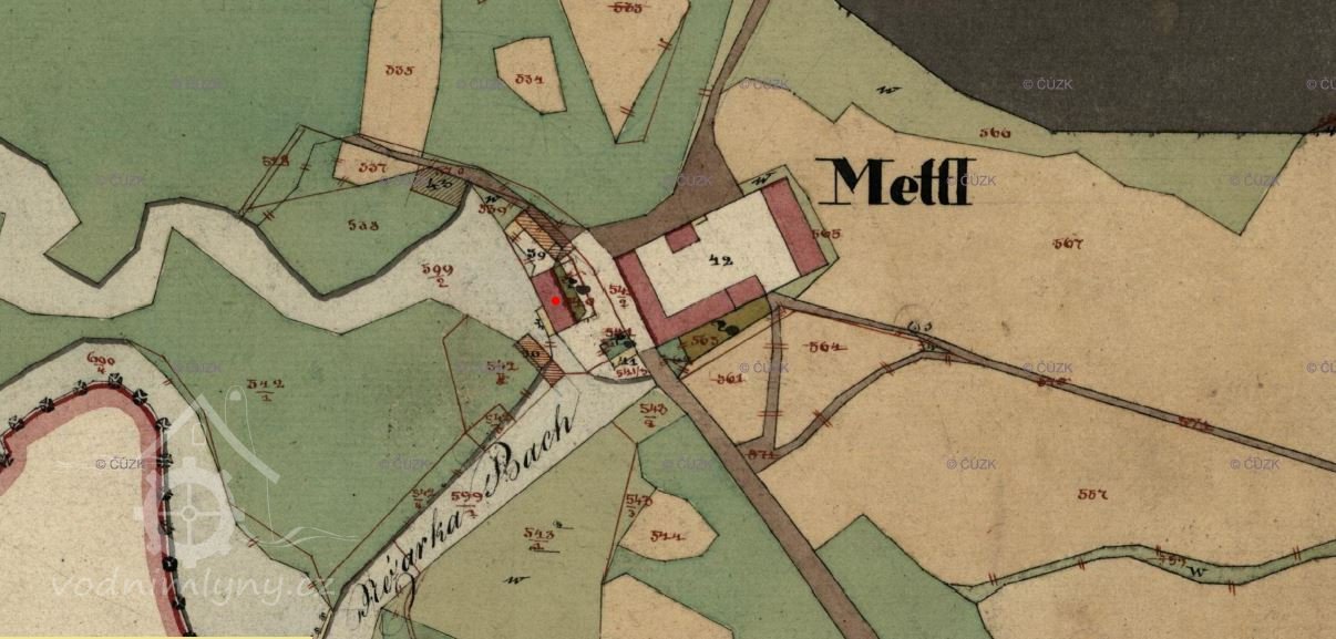 Mlýn s elektrárničkou, náhon, budovy upravované k rekreaci. Majitel cizí státní příslušník.