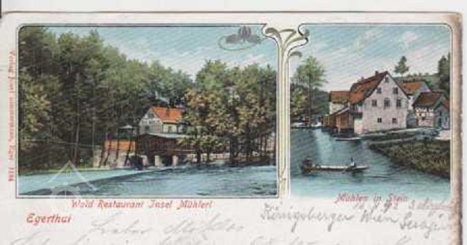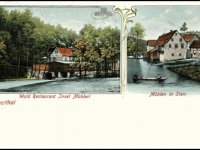 Dnes již neexistující mlýn. Vyobrazen na mnoha pohlednicích, neboť naproti byla z jiného mlýna udělána výletní hospoda.