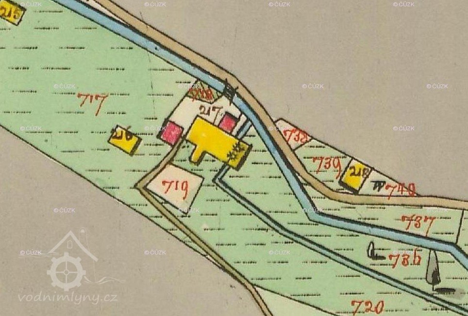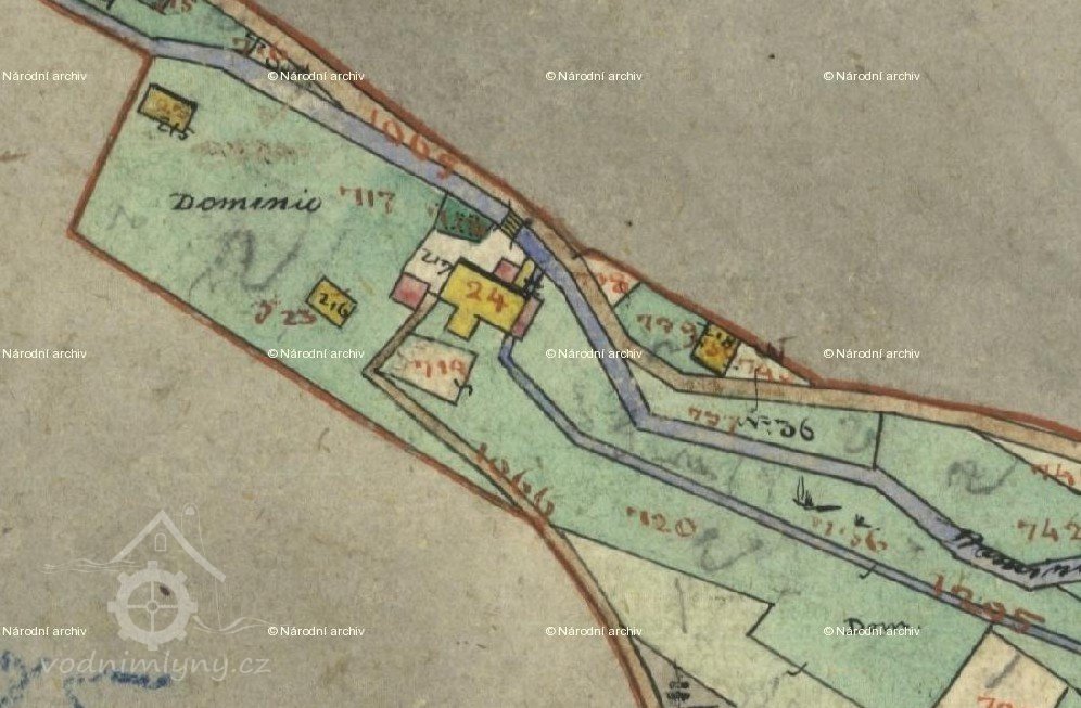 Původní dřevěný mlýn měl č. p. 24, nyní č. p. 280.