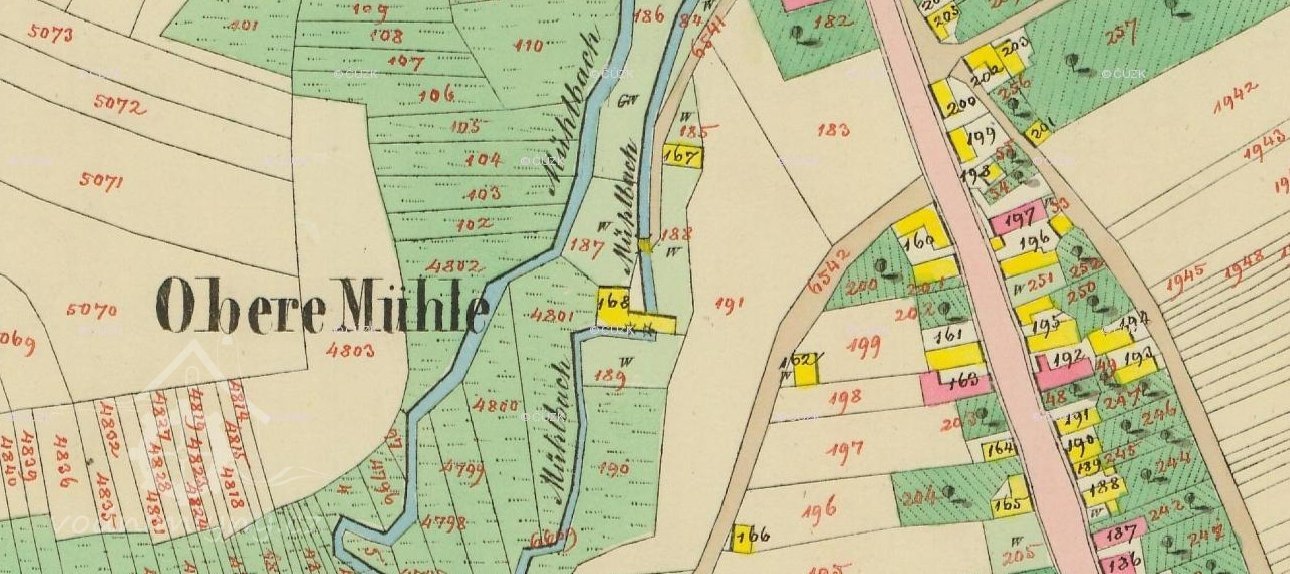 V roce 1930 byl majitelem mlýna Rudolf Fíedler. Mlýn měl 2 kola na vrchní vodu.