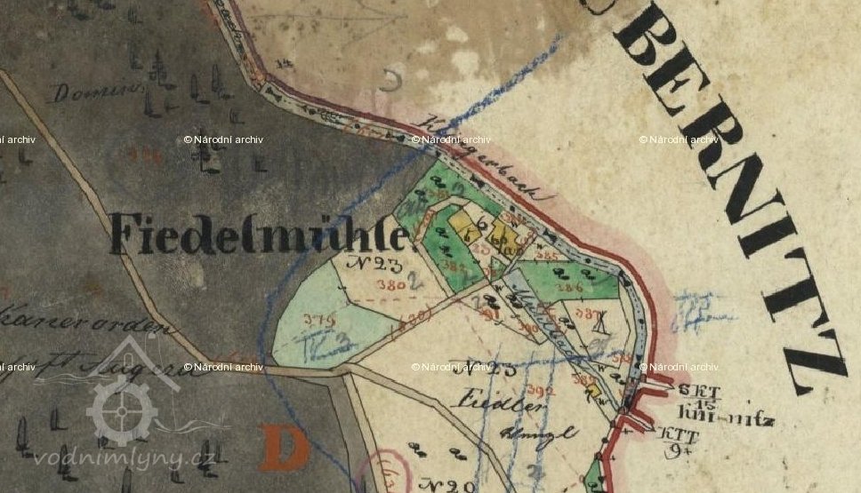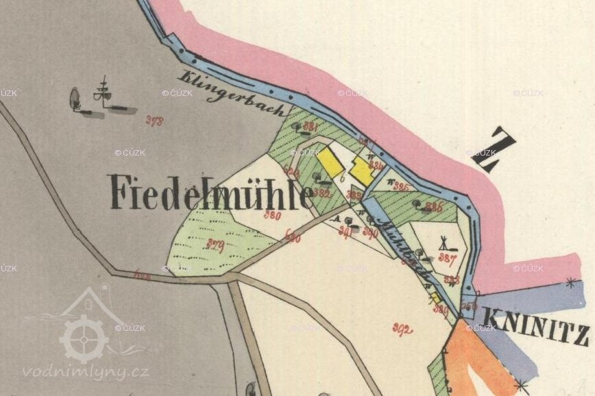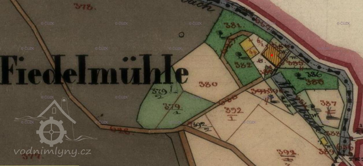 Fiedelmühle (SK 1845), Friedlův mlýn (3.VM topo 1916)