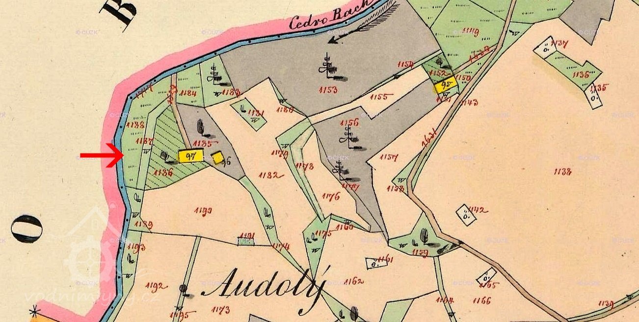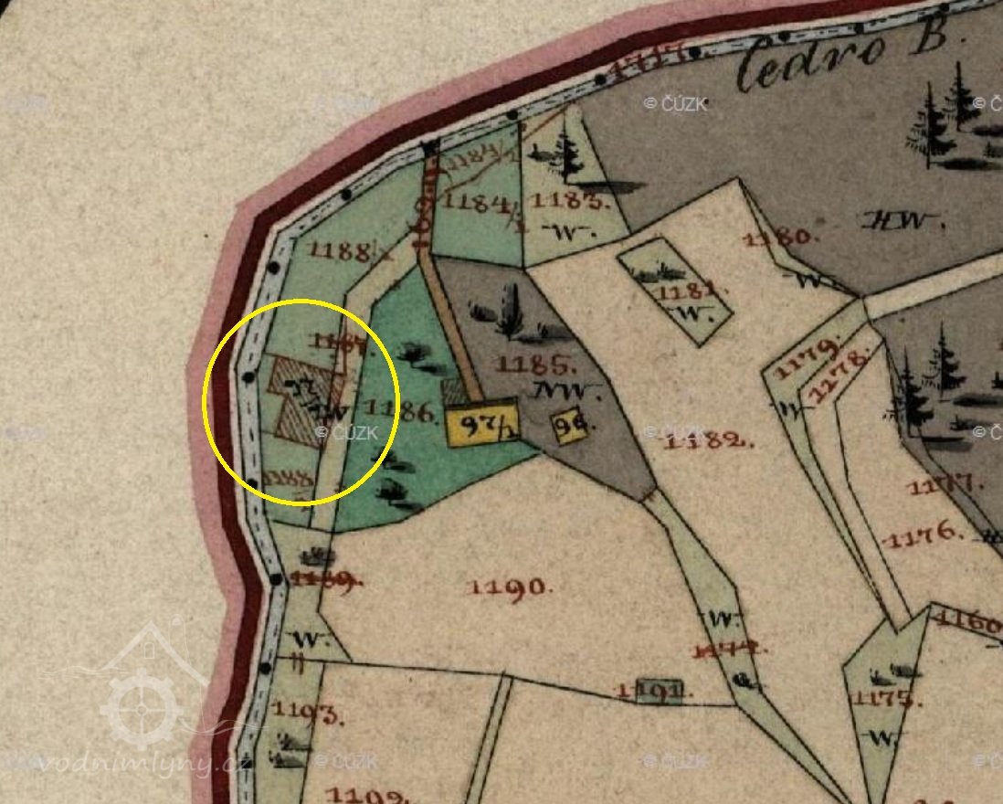 Náhon z potoka Cedronu, při nedostatku vody doplňovala voda ze Lhotského potoka.