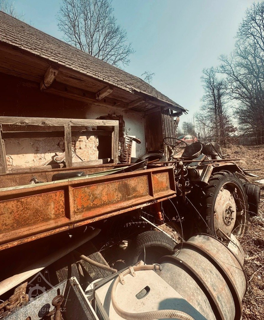 U jednoho nároží je vyvedena transmise s řemenicí ven - pravděpodobně sloužila k pohonu zemědělských strojů. (RŠ)