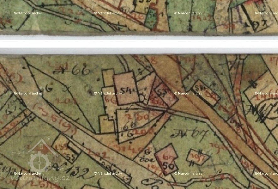 „ ...Podkostelní mlýn č. p. 66 v Lomnici nad Popelkou stojí na st. p. č. 54 v k. ú. Lomnice nad Popelkou, obec Lomnice nad Popelkou, okres Semily, Liberecký kraj. Podle map císařských otisků stabilního katastru z roku 1842 je mlýn zakreslen jako nespalné stavení na obdélném půdorysu, k němuž v severozápadním nároží těsně přiléhá spalný objekt obdélného půdorysu. Náhon vede od severu podél východní obvodové stěny mlýna. Mlýn je vyobrazen s jedním mlýnským kolem. V jihozápadním nároží pozemku 54 se nacházela další spalná stavba na půdorysu písmene „ L “, pravděpodobně stodola.
