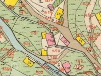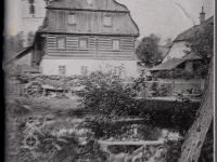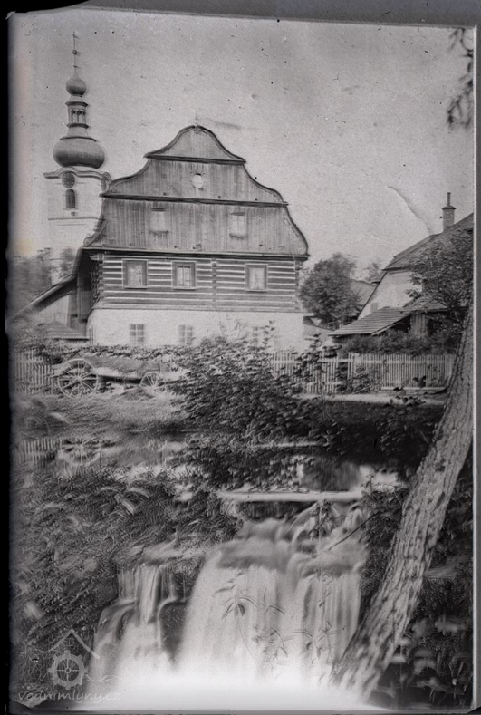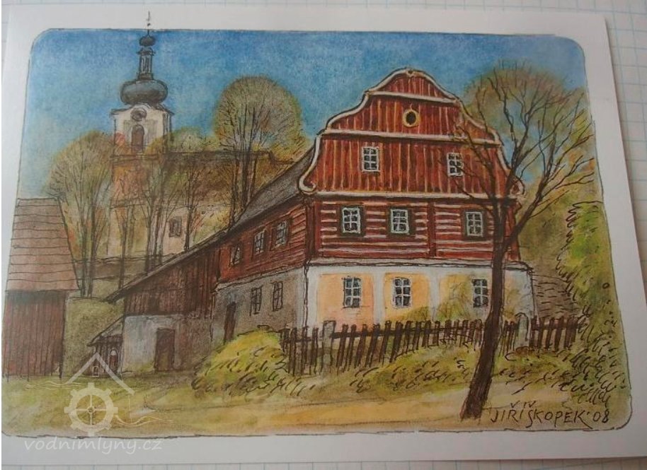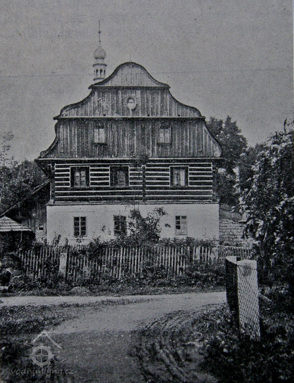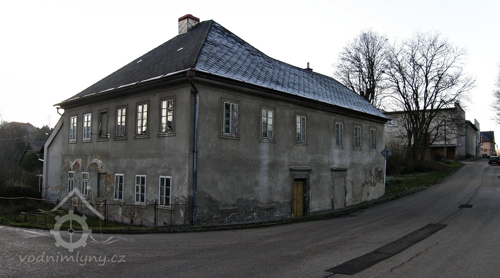 „ ...Barokní zděný mlýn s roubeným patrem a malebnou lomenicí byl vybudován v roce 1840 zřejmě na půdorysu mnohem starší stavby. Byl poháněn vodním kolem situovaným na severovýchodní straně budovy, ještě v roce 1911 (fotodokumentace ve složce) byla stavba dochována v původní podobě a fungovala jako tkalcovna s instalovanou vodní turbínou, jejíž zbytky jsou dnes ještě patrné in šitu. Následně došlo k dílčí úpravě stavby se zrušením zmíněného malebného štítu do jednodušší podoby, snad společně s výměnou krytiny za tašky.